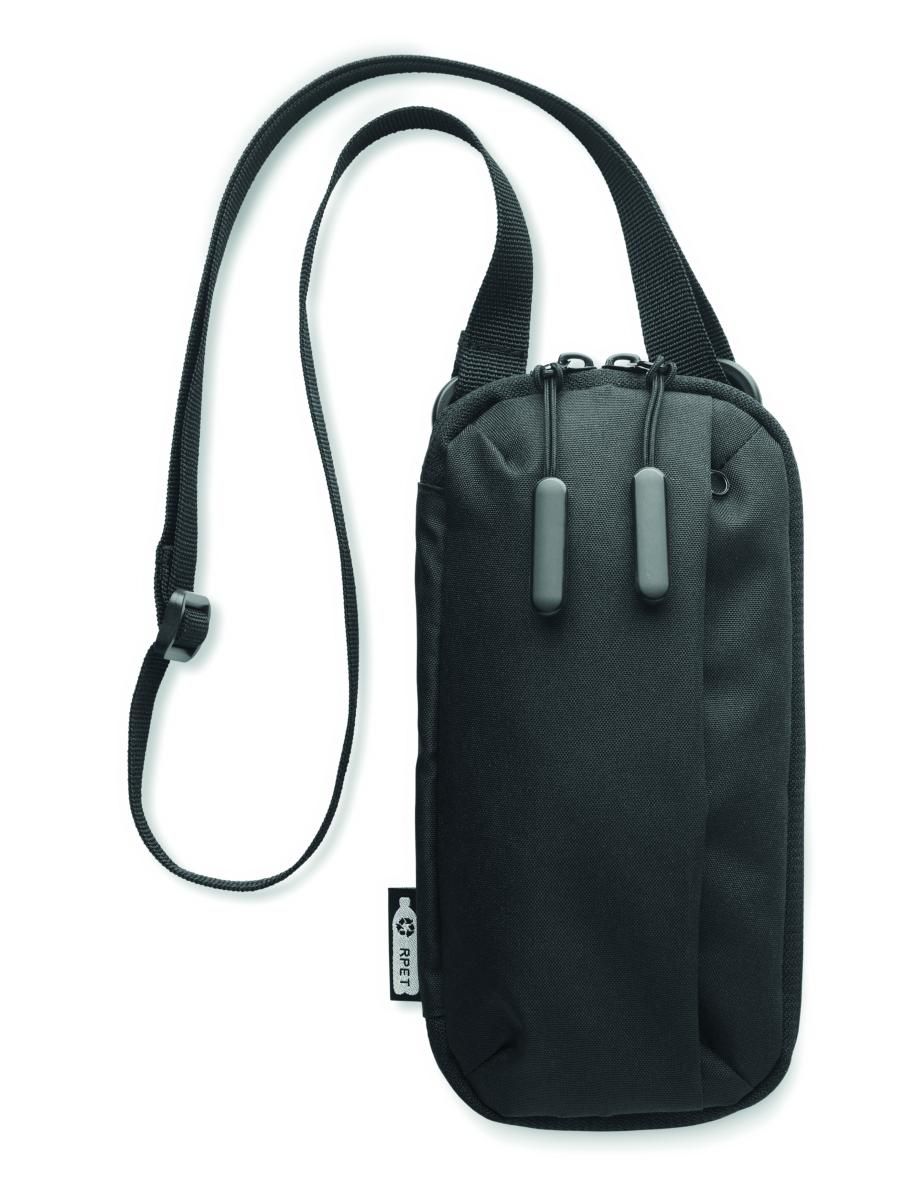 Bolsa bandolera para smartphone en poliéster RPET 300D con correa ajustable. Bolsillo frontal y lateral con cremallera. Compartimento principal con varios bolsillos.