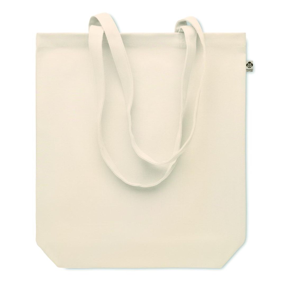 Bolsa de la compra de canvas orgánico de asas largas y fuelle inferior. 270 gr/m².