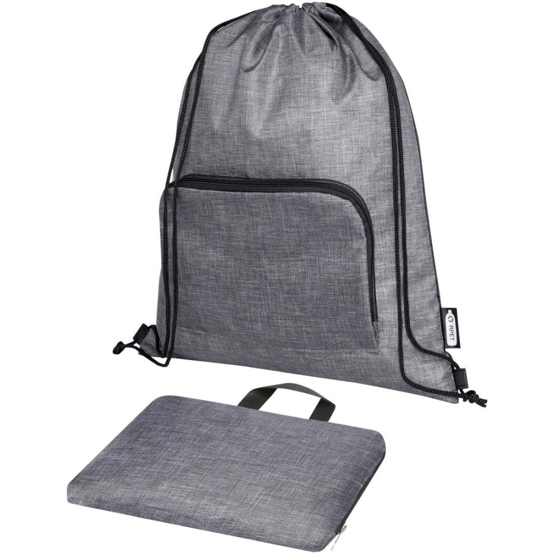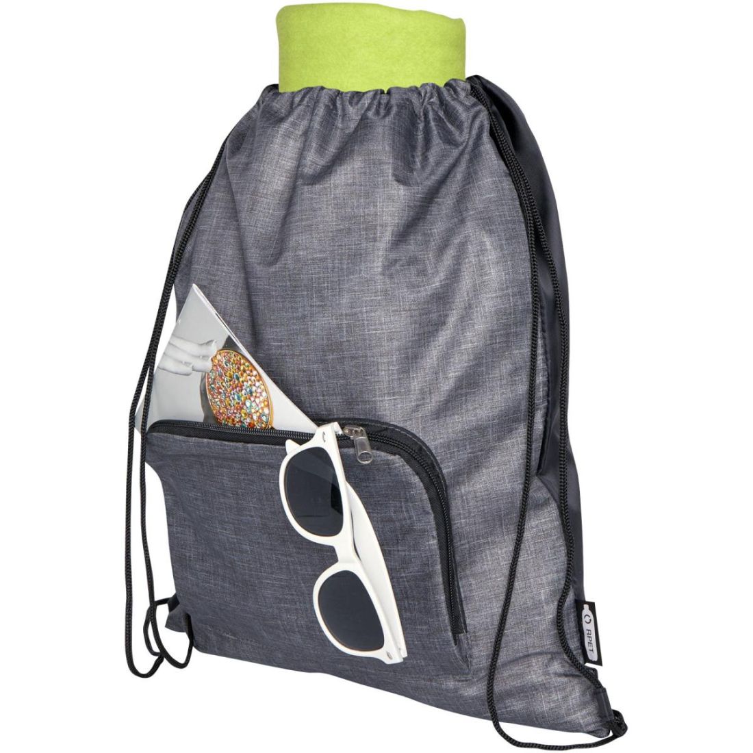 La bolsa con cordón plegable reciclada cuenta con un compartimento principal con cierre de cordón de ajuste y uno delantero con cremallera en el que la bolsa se puede plegar fácilmente para...
