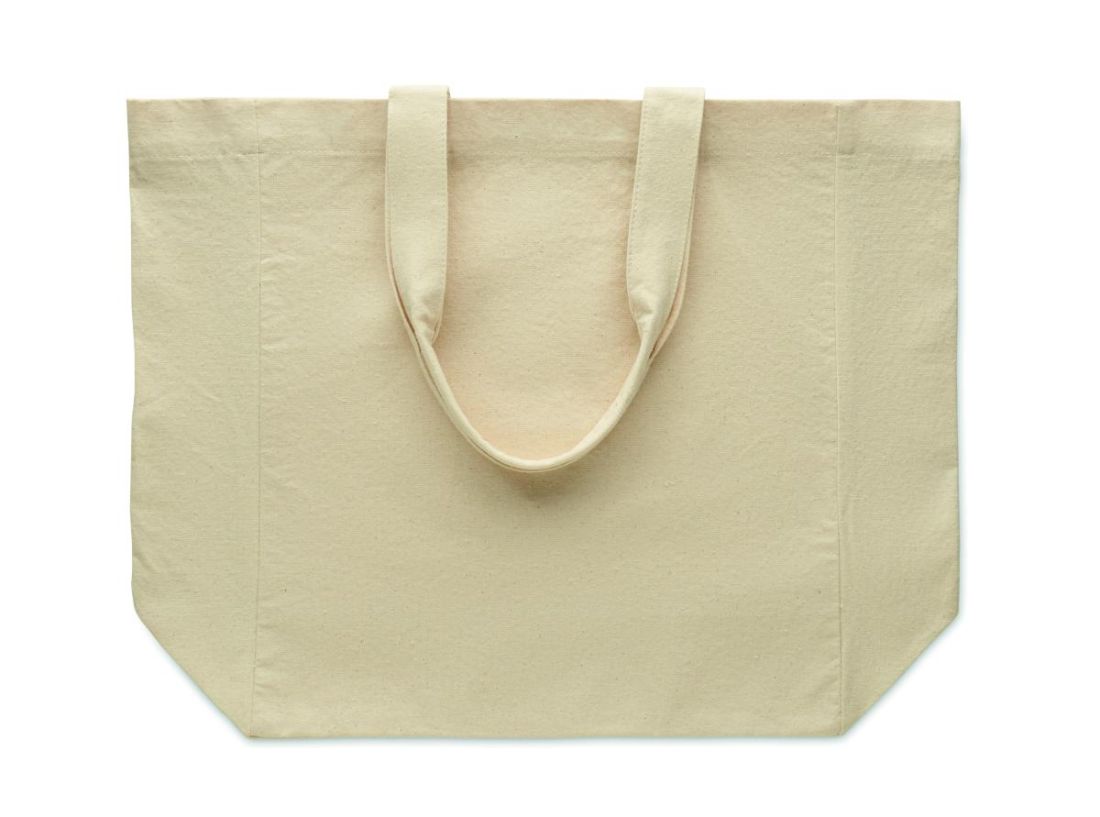 Bolsa de la compra totebag de algodón con asas cortas y fuelle. 220 gr/m².