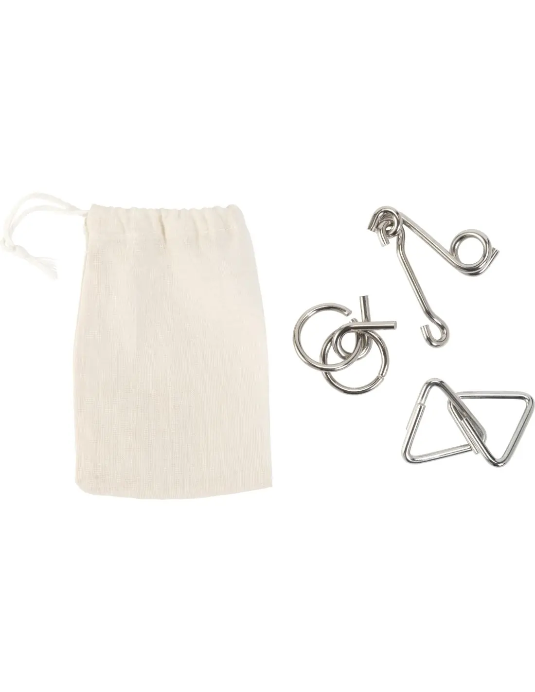 Set de 3 juegos de habilidad de acero. Presentados en una bolsa de algodón (80gr/m²) con cordón.