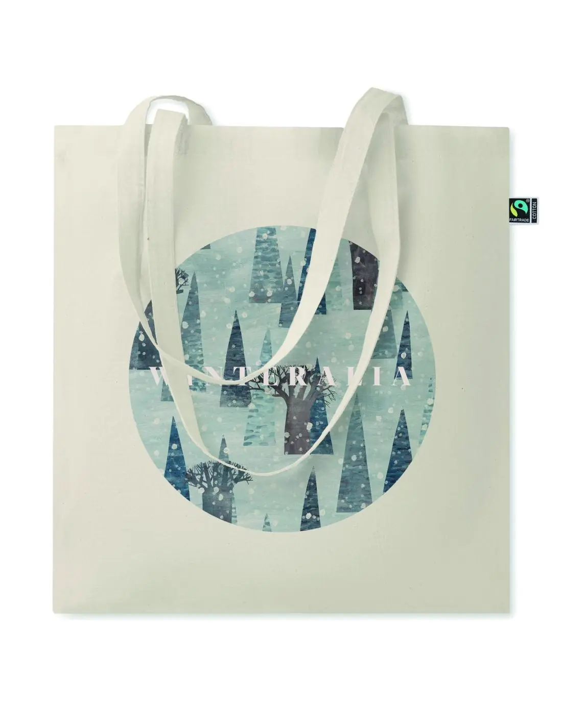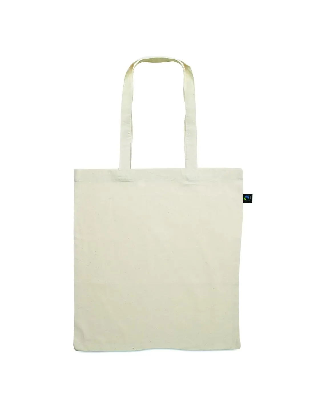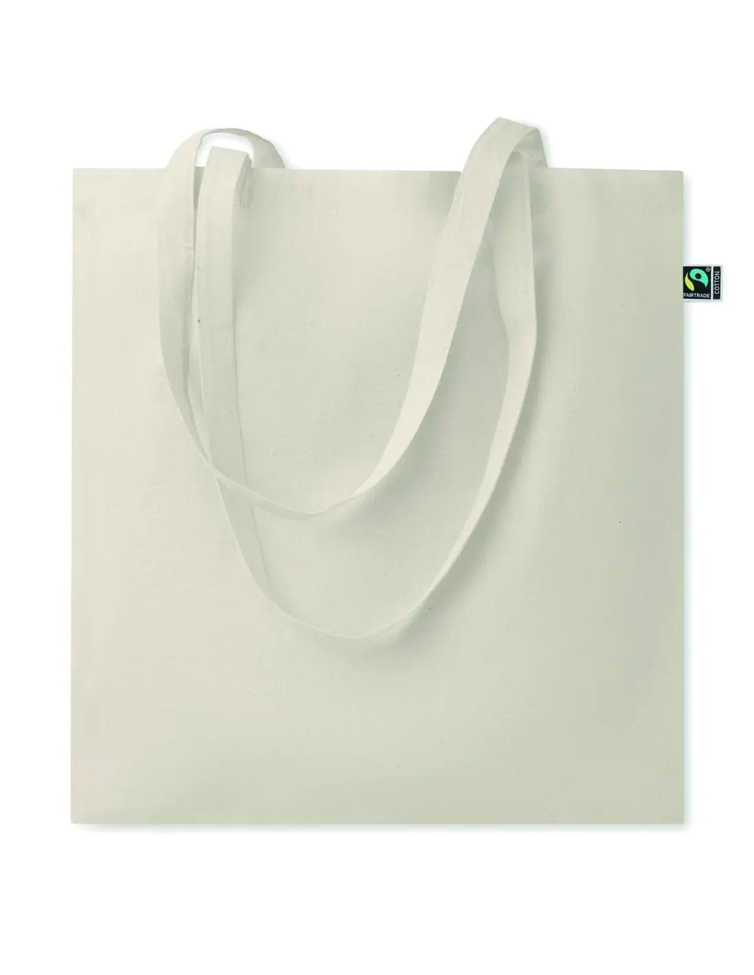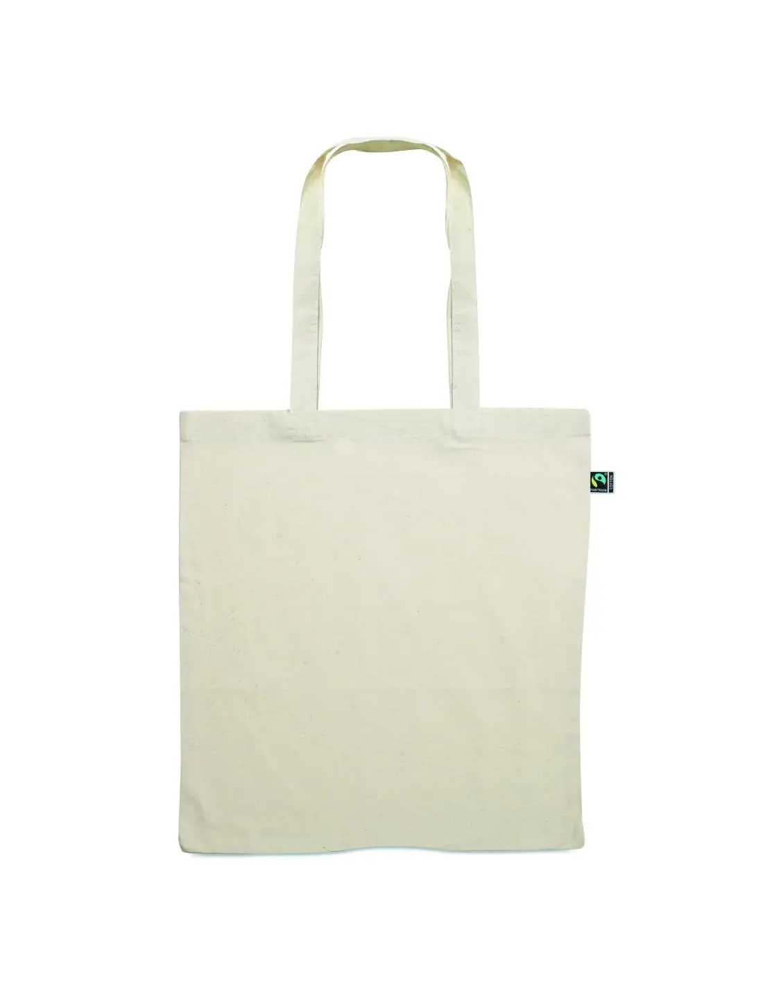 Bolsa de la compra de algodón de comercio justo con asas largas. 180 gr/m². Este producto cuenta con la certificación OEKO-TEX® STANDARD 100.