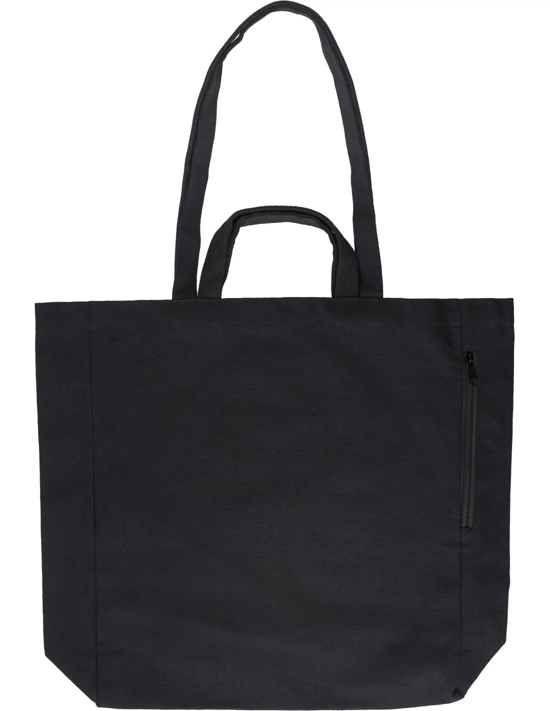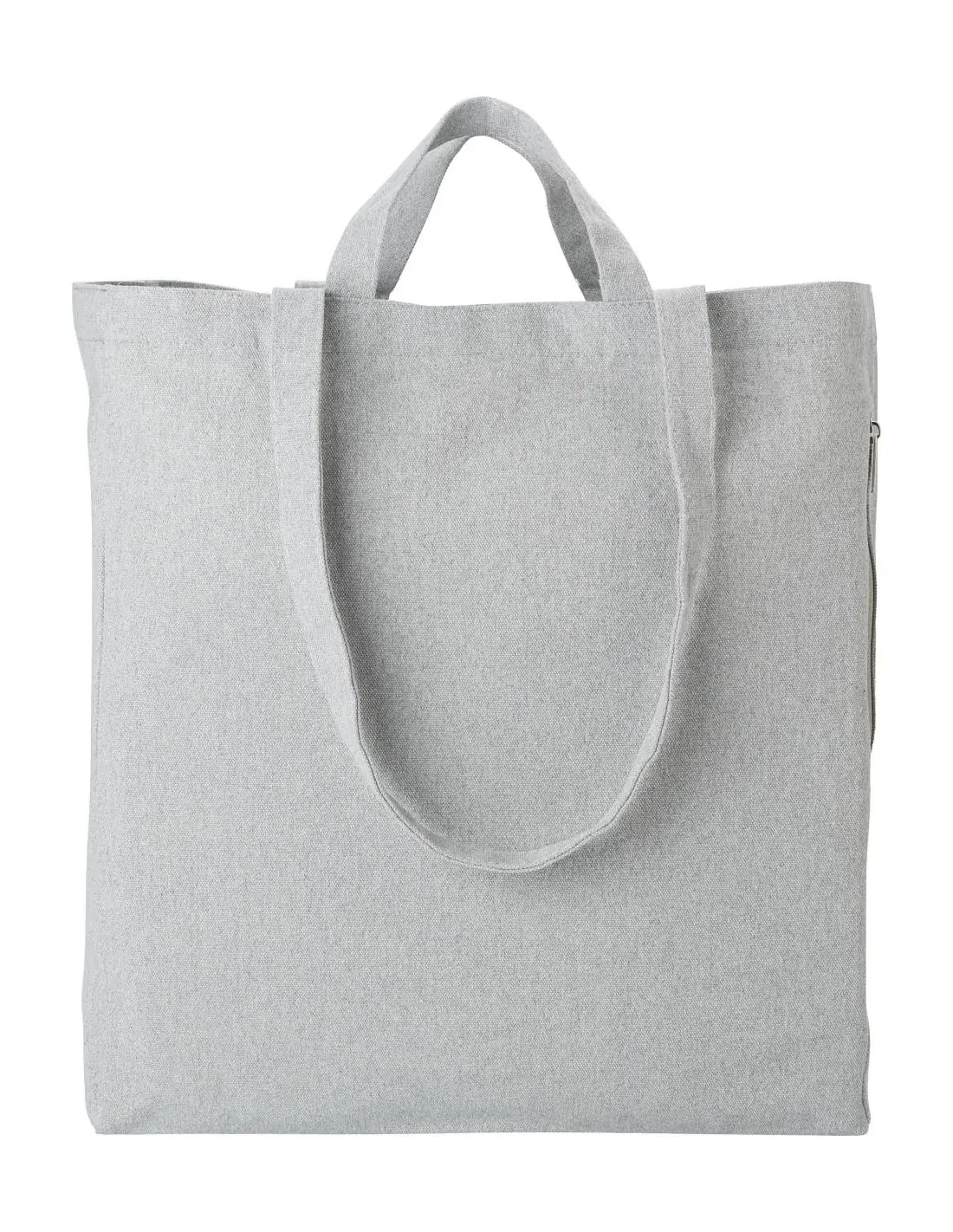 Bolsa de la compra de poliéster y algodón reciclado (350 g/m²) con asas cortas y largas. Bolsillo lateral con cremallera.