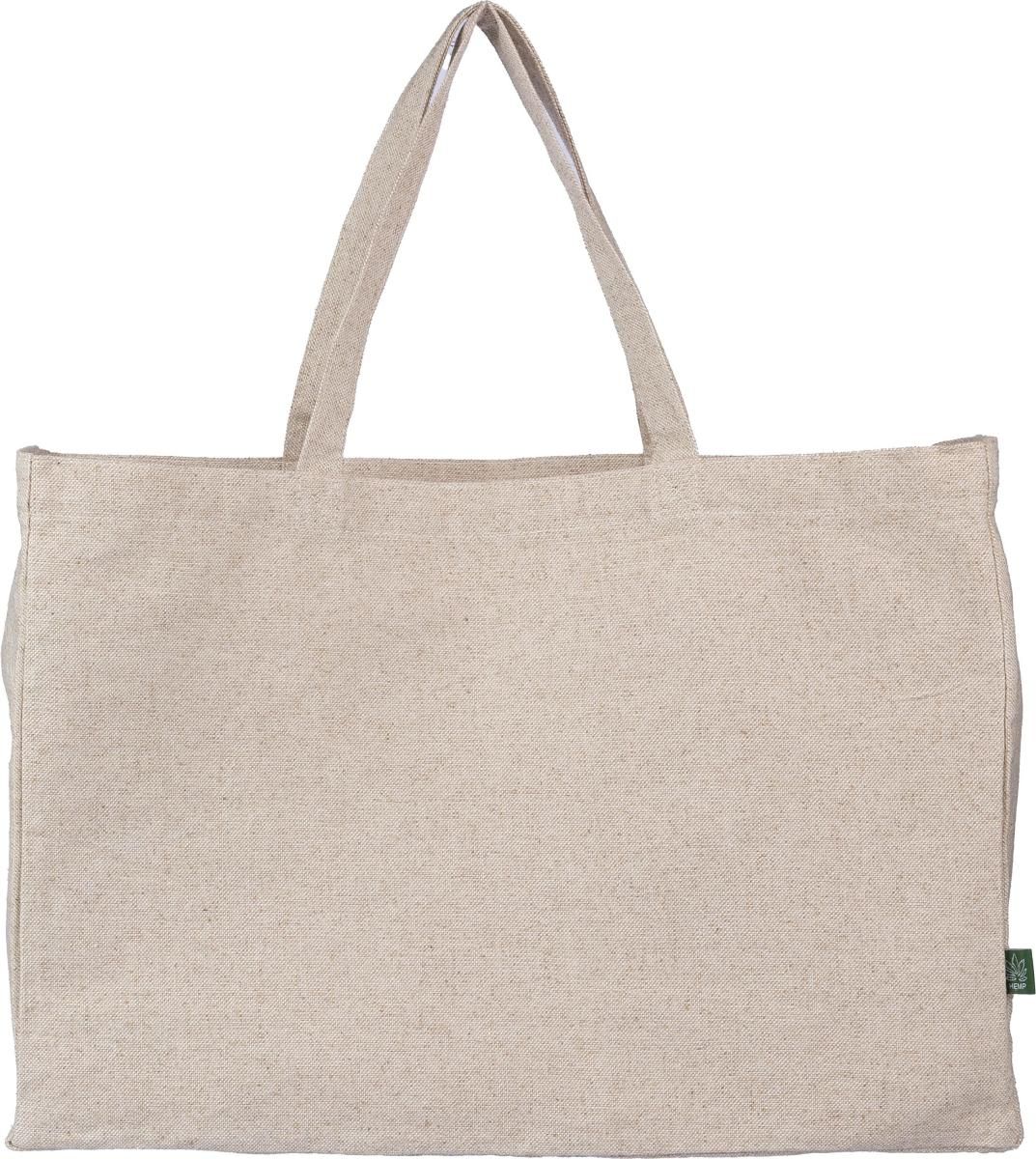 Bolsa de mano de cáñamo (280 g/m²) con asa cortas. Incluye el logotipo de cáñamo en la etiqueta.