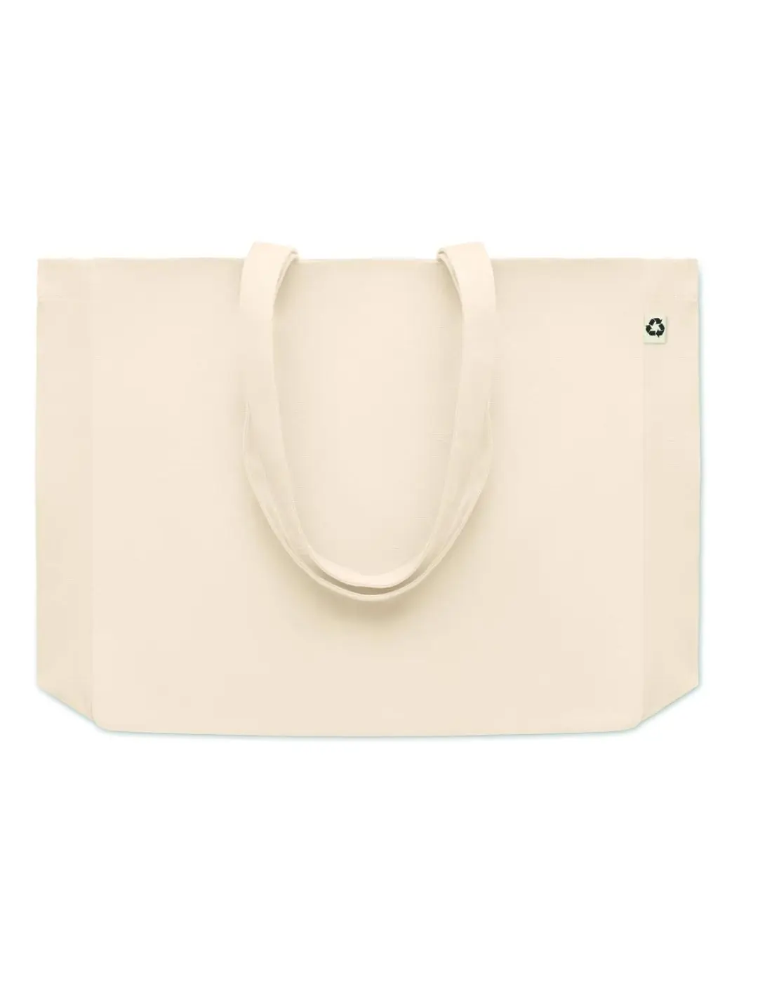 Bolsa de la compra o de playa de canvas reciclado con asas largas y fuelle. 280 gr/m².