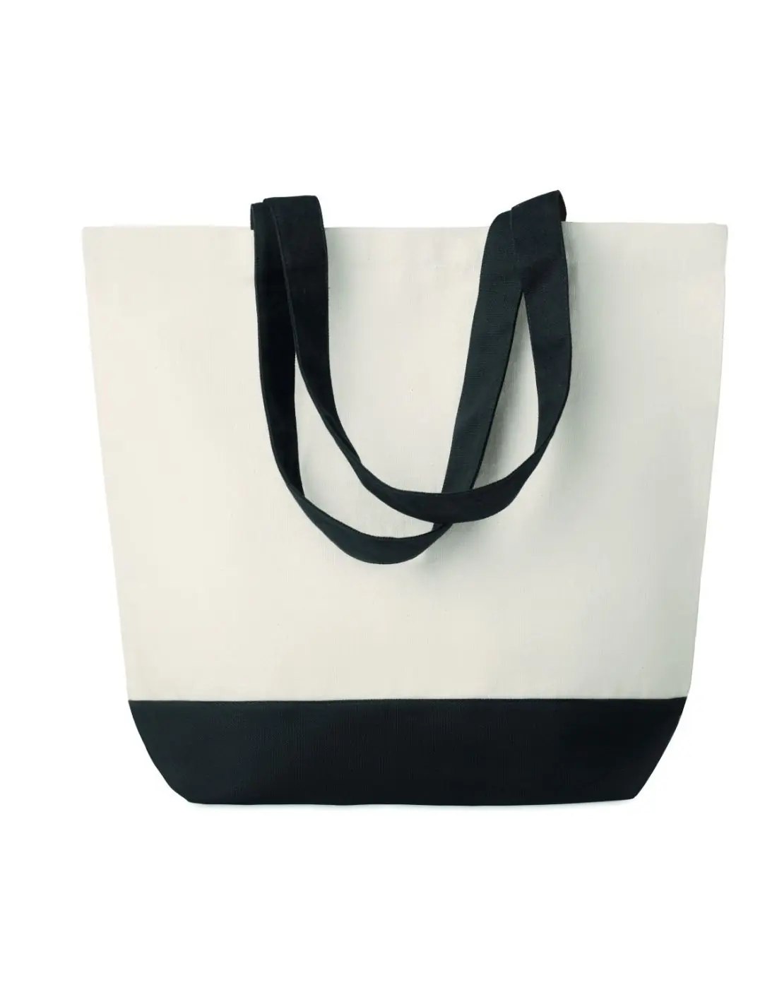 Bolsa de compra de canvas 280gr/m² con base y asas de color a juego. Bolsillo interior.