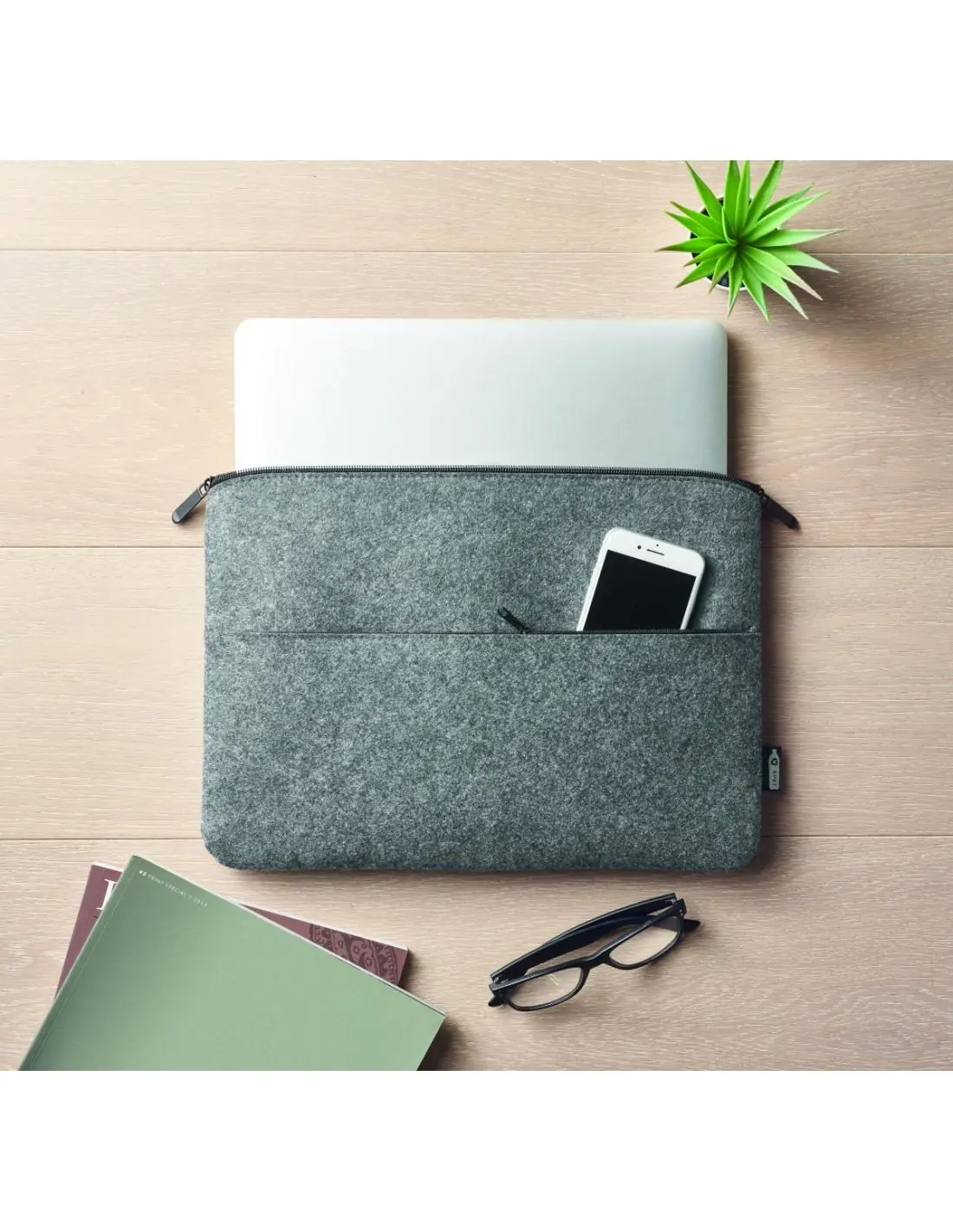 Bolsa de fieltro RPET para portátil de 14 pulgadas con cremallera y bolsillo frontal con cremallera.