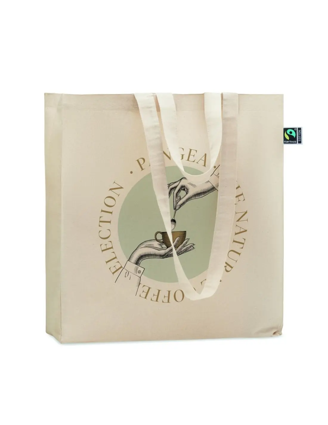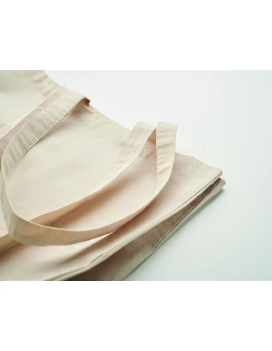 Bolsa de la compra de algodón Fairtrade con asas largas y fuelles. 180 gr/m². Este producto cuenta con la certificación OEKO-TEX®