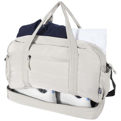 La bolsa de lona combina un diseño distintivo y materiales reciclados con certificado GRS de primera calidad para ofrecer practicidad en el día a día. Con una capacidad de 30 litros, es perfecta para viajes cortos, ir al gimnasio o uso diario. La bolsa cuenta con un gran compartimento principal con cremallera para la ropa y el equipo, un compartimento inferior aislado con forro de PEVA para separar los objetos húmedos de los secos, y múltiples bolsillos interiores y exteriores para una buena organización. Una correa para sujetarla a la maleta, una correa ajustable para el hombro y asas proporcionan opciones de transporte versátiles. Ligera y repelente al agua, esta bolsa de lona está diseñada para adaptarse a tu estilo de vida.