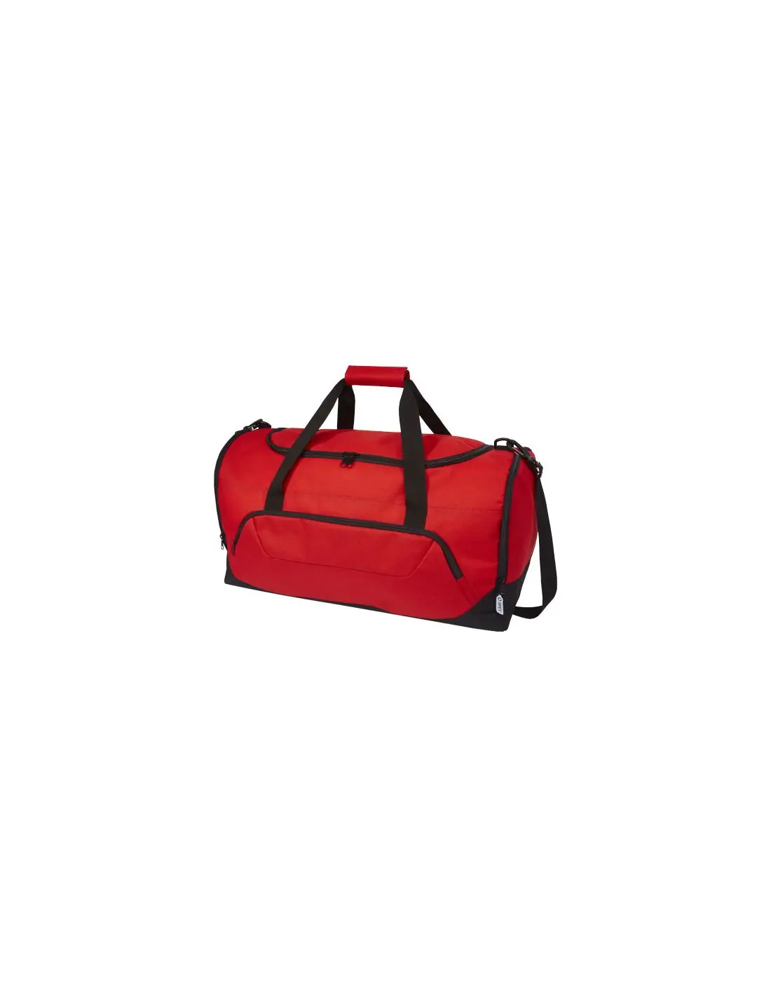 Bolsa de lona duradera hecha 100 % de plástico reciclado que contribuye a la reducción de los desechos plásticos. Cuenta con un gran compartimento principal y un bolsillo frontal con cremallera, correa acolchada para el hombro y asas acolchadas. Para fabricar esta bolsa se reciclaron aproximadamente 27 botellas.
