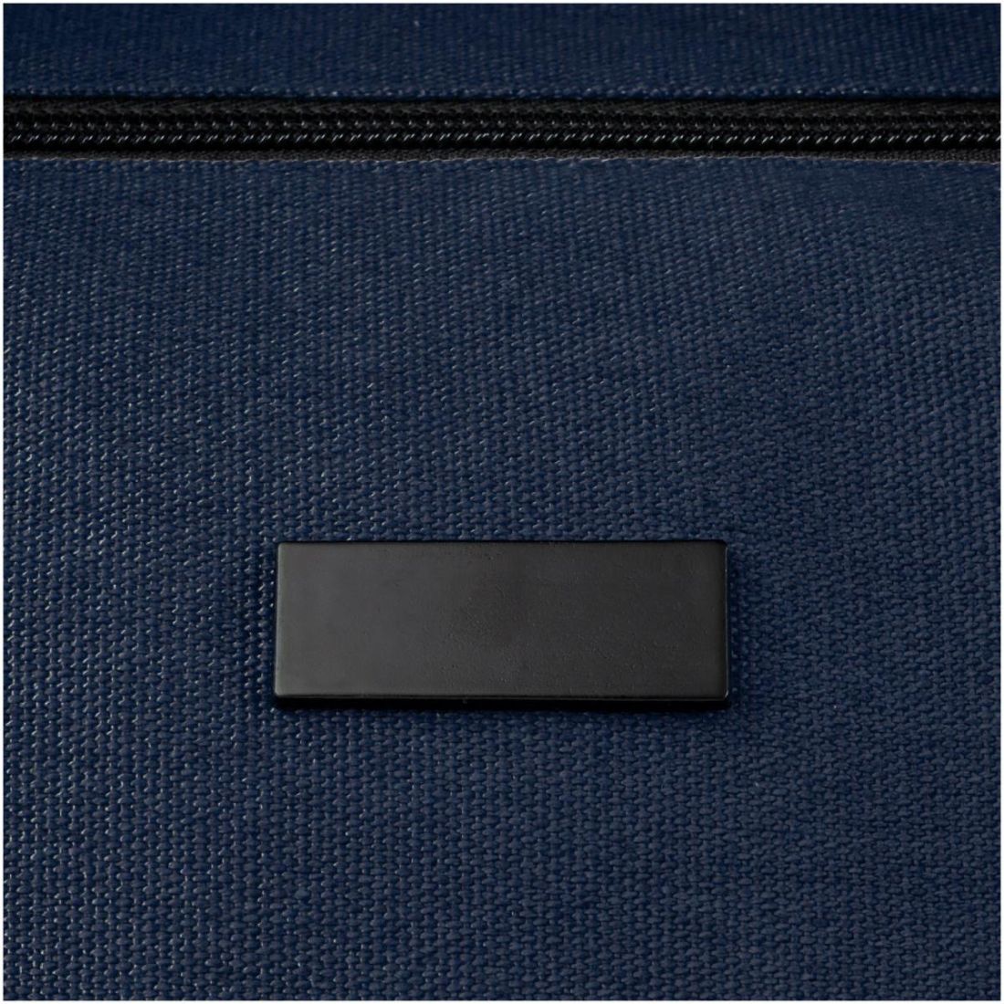 Compuesta por lona reciclada GRS y forro GRS RPET, la bolsa de lona deportiva de 25 litros cuenta con un espacioso compartimento principal con cremallera y un bolsillo interior con cremallera para su seguridad. También tiene un bolsillo delantero abierto y otro bolsillo con cremallera de correa en la parte trasera para un carrito. Se puede llevar mediante asas de correa reforzadas o la correa de hombro desmontable y ajustable para mayor comodidad. La placa metálica decorativa puede hacer brillar un logotipo gracias a su acabado sutil y mate.