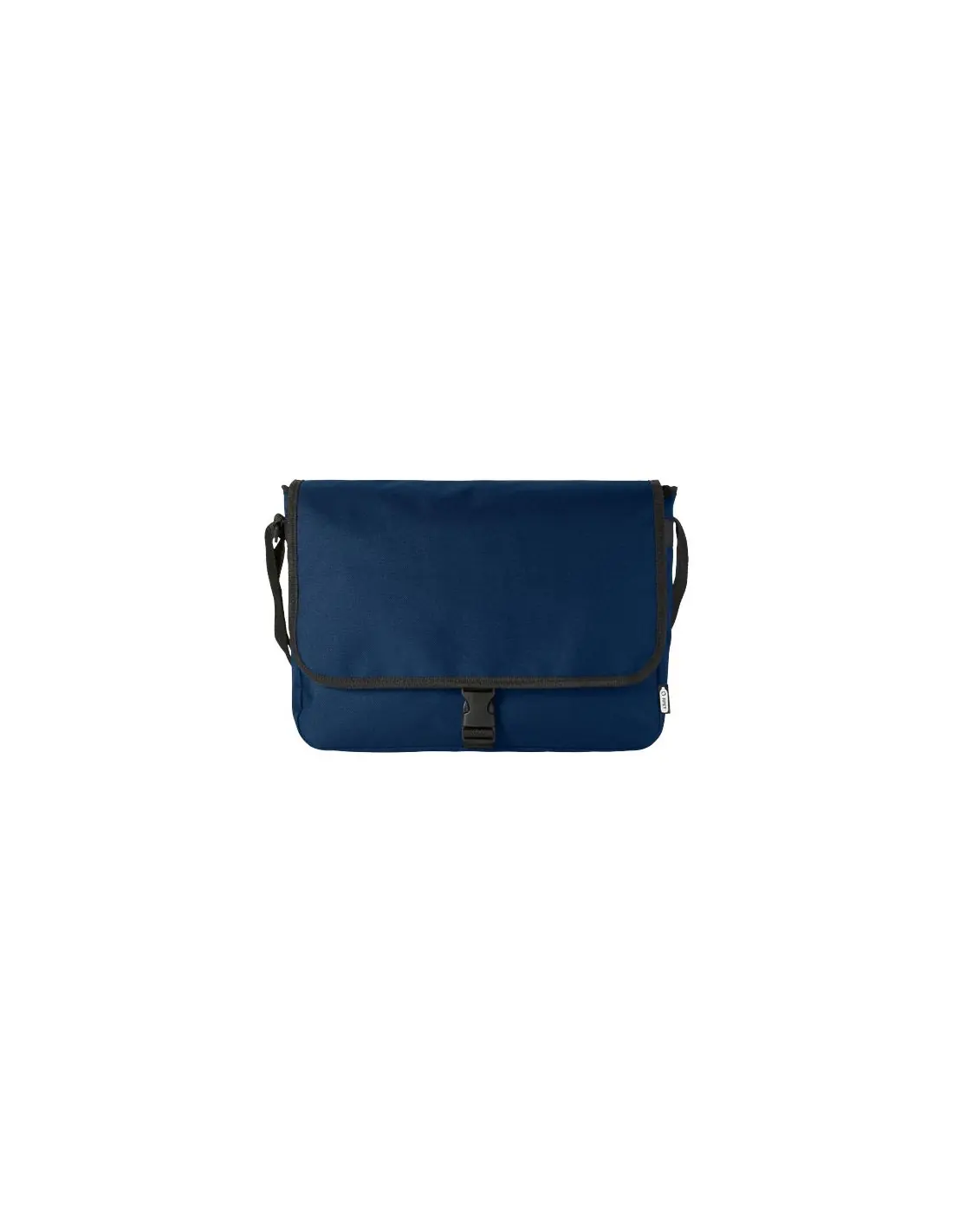 Bolsa de mensajero fabricada con plástico PET reciclado y una correa de hombro ajustable. Incluye un compartimento principal que se cierra con una solapa y un cierre de hebilla.