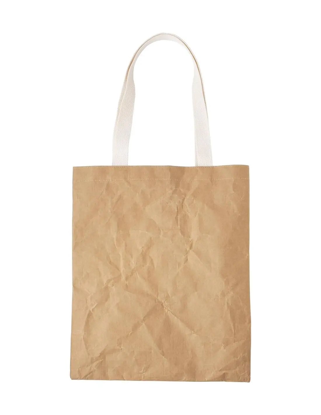 Bolsa de papel Kraft (80 gr/m²) con interior laminado de PE. Asa de poliéster y algodón.