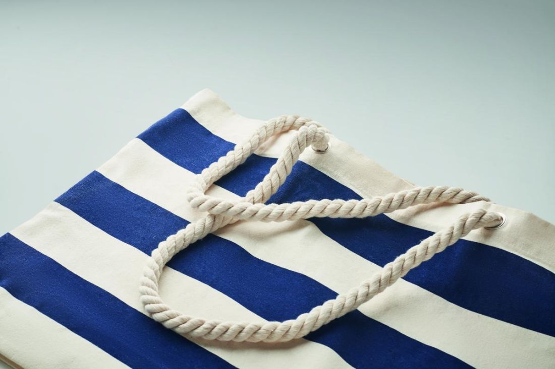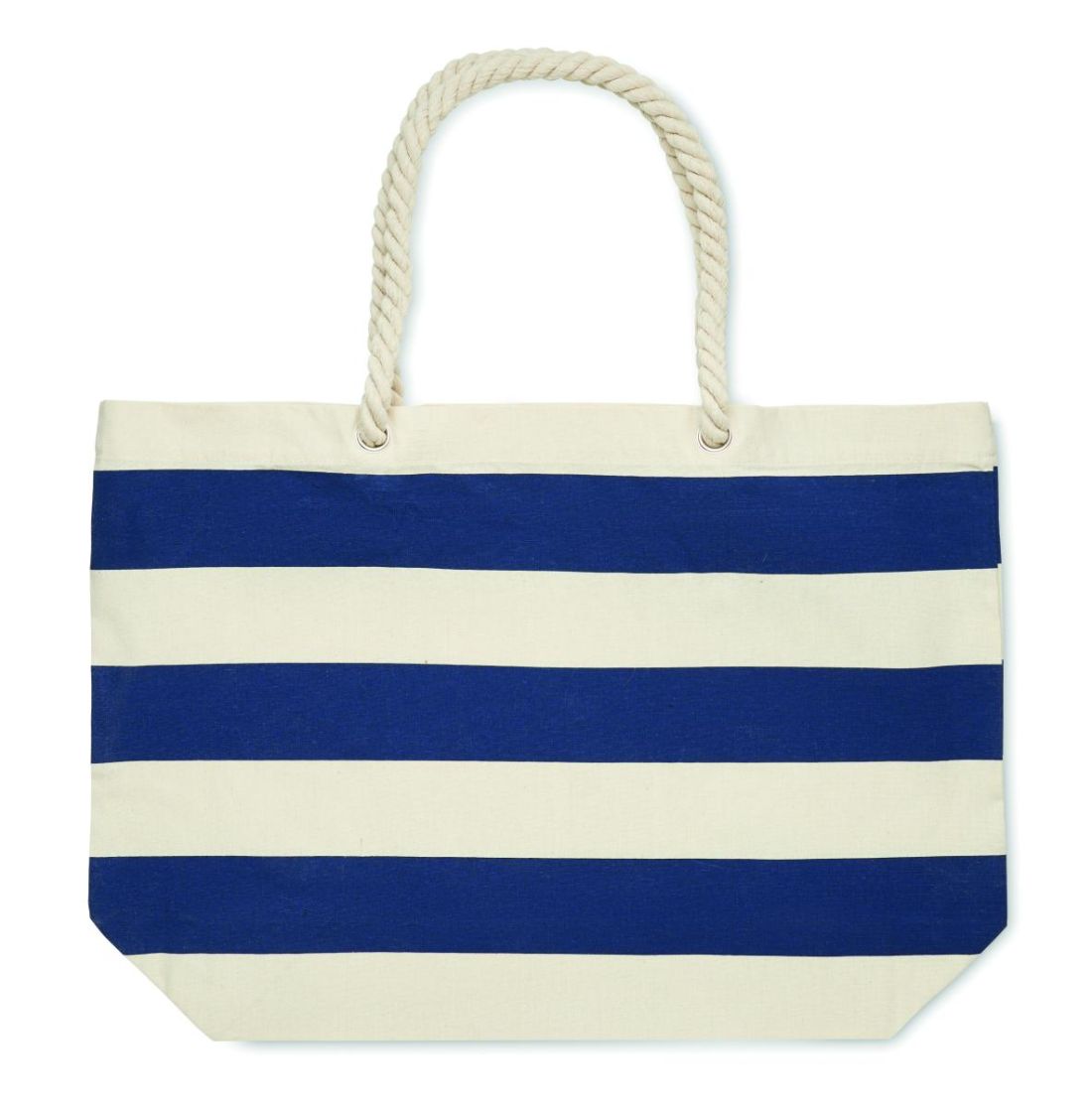 Bolsa de playa o de compra a rayas en algodón con asa de cuerda. 220 gr/m².