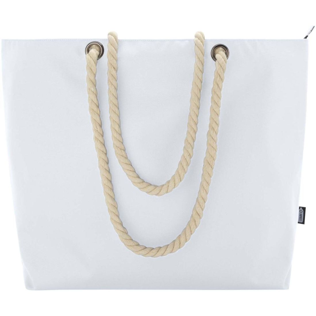 La bolsa Tote está fabricada con poliéster reciclado con certificado GRS y cuenta con un gran compartimento principal con cremallera, asas de aluminio y cordón de algodón de alta calidad. Es adecuada para diversas actividades, como hacer la compra o pasar un día en la playa o en el parque. Capacidad: 23 litros. Resistencia para hasta 10 kg de peso. Sin PVC.