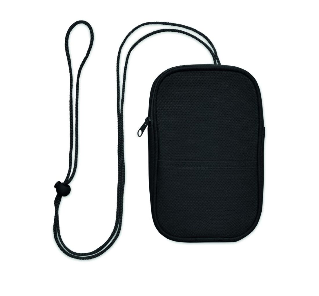 Bolsa de viaje cruzada de poliéster RPET 600D y forro RPET 210D con correa de cordón.
