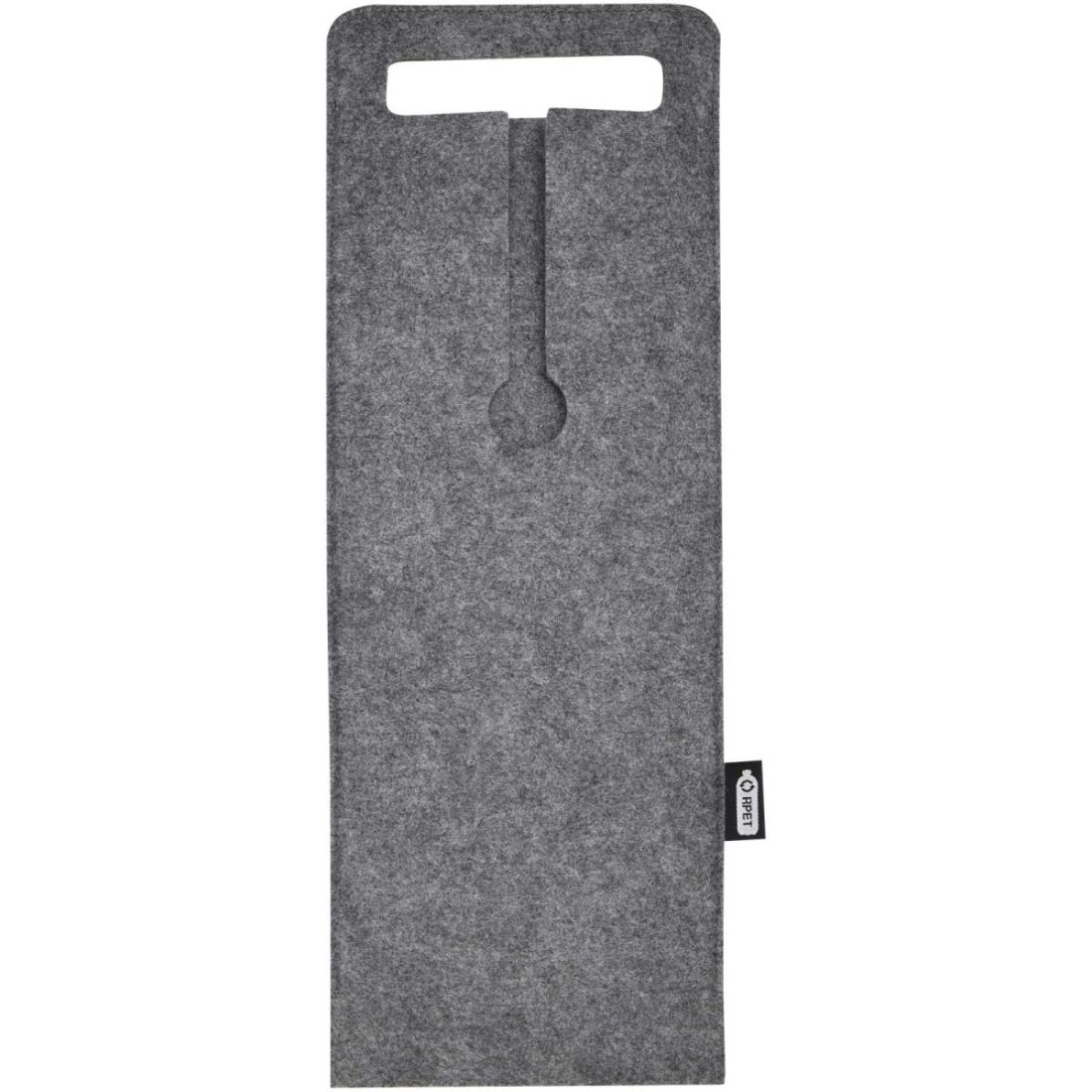 Bolsa para vino suave y duradera de fieltro reciclado con certificación GRS, forma definida y asas para facilitar su transporte. Capacidad: 75 cl.