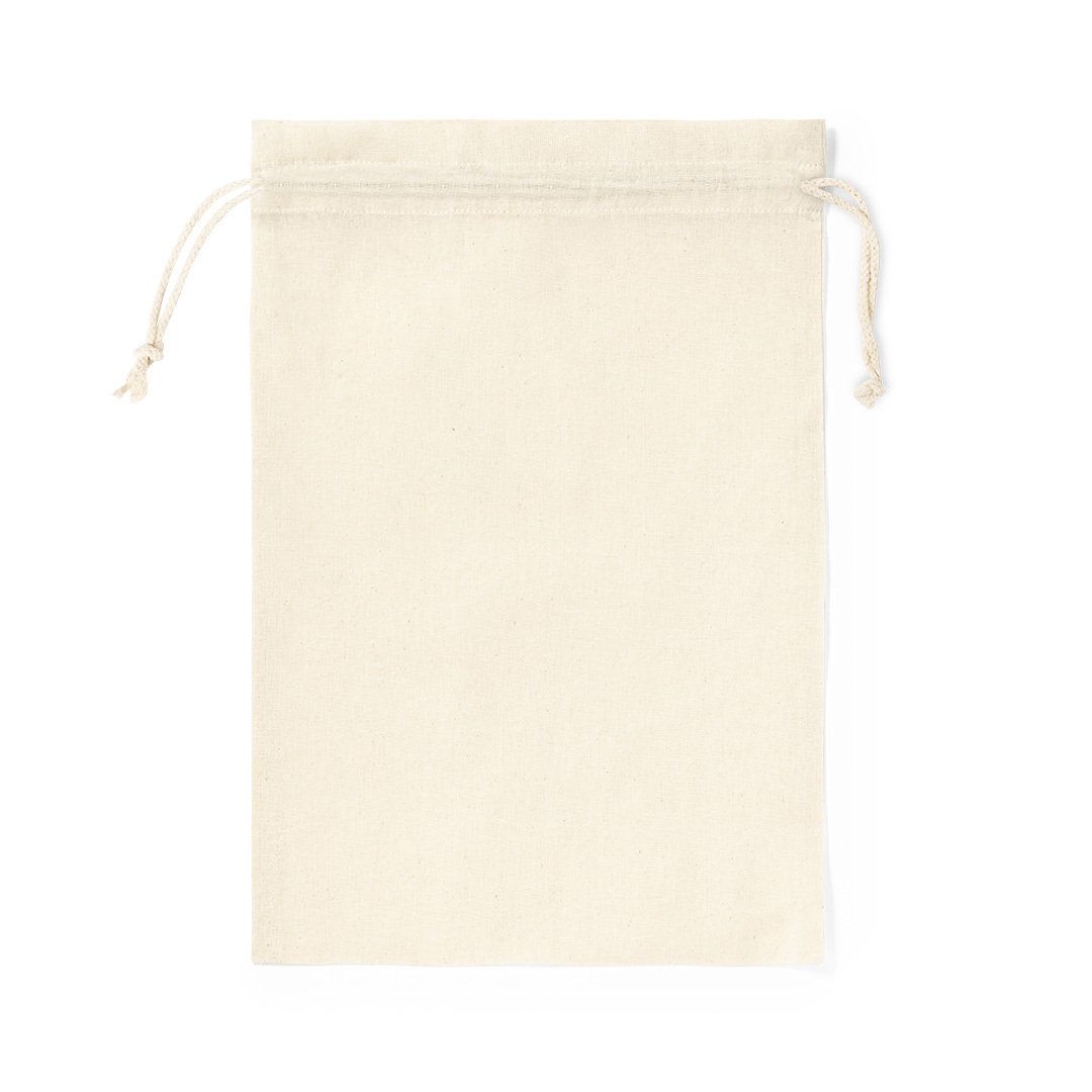 Bolsa de línea nature en resistente material 100% algodón de 105g/m2, con acabado en color natural. Cierre de cordón de algodón y acabado cosido.
