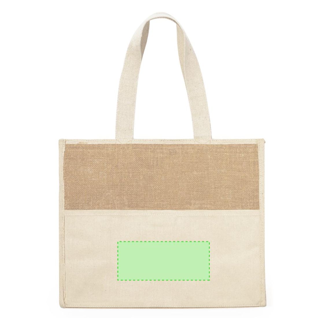 Bolsa nevera confeccionada en combinación de algodón y yute laminado, con interior isotermico de aluminio. Con cierre de velcro, amplio bolsillo...