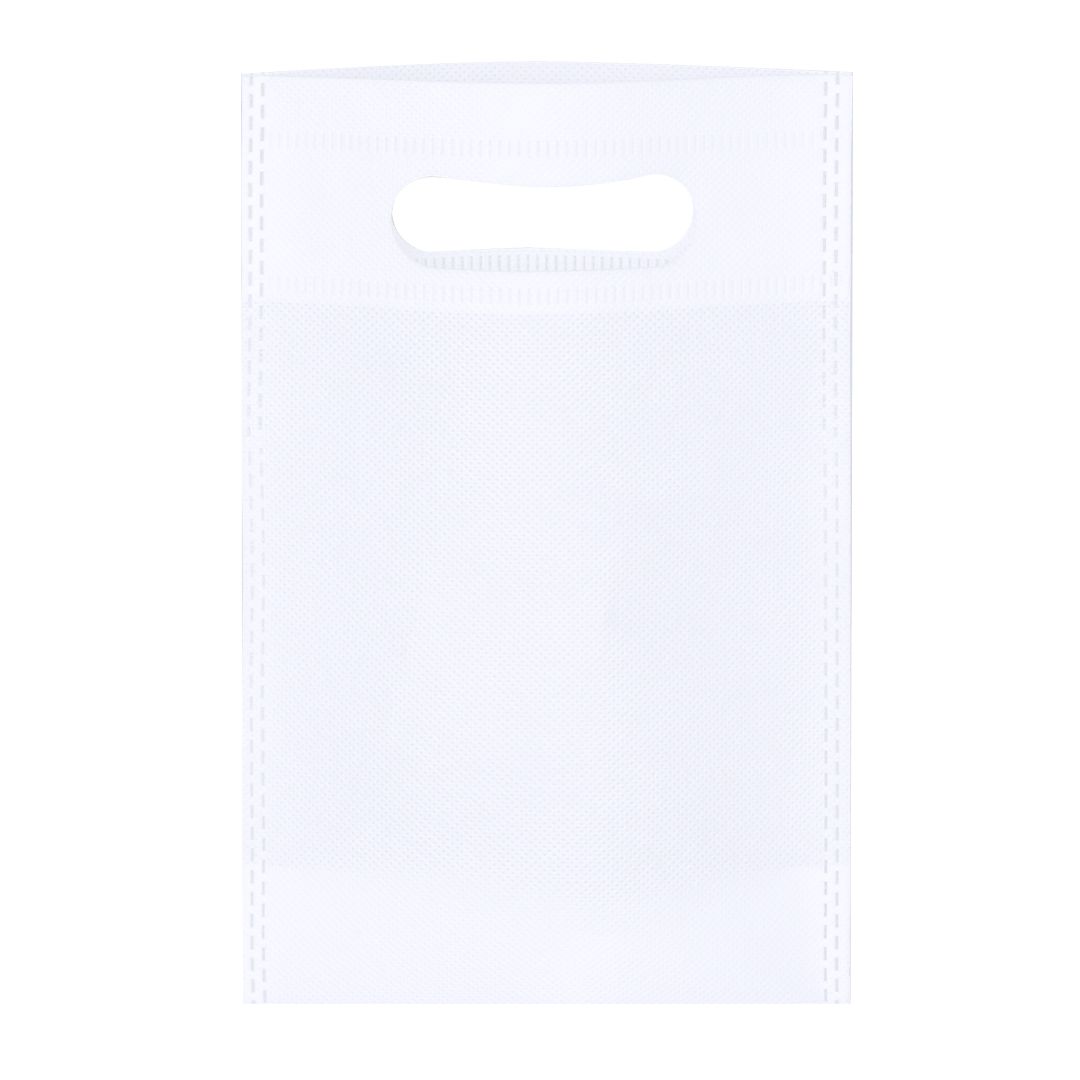 Bolsa de non-woven de 80g/m2. Con asa de acabado termosellado y fuelle redondo en la base.