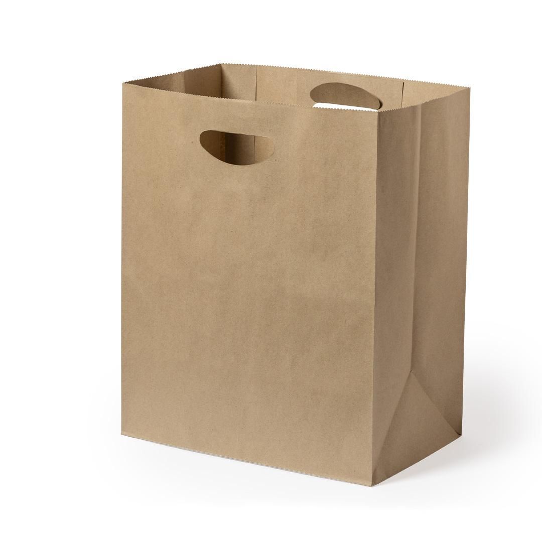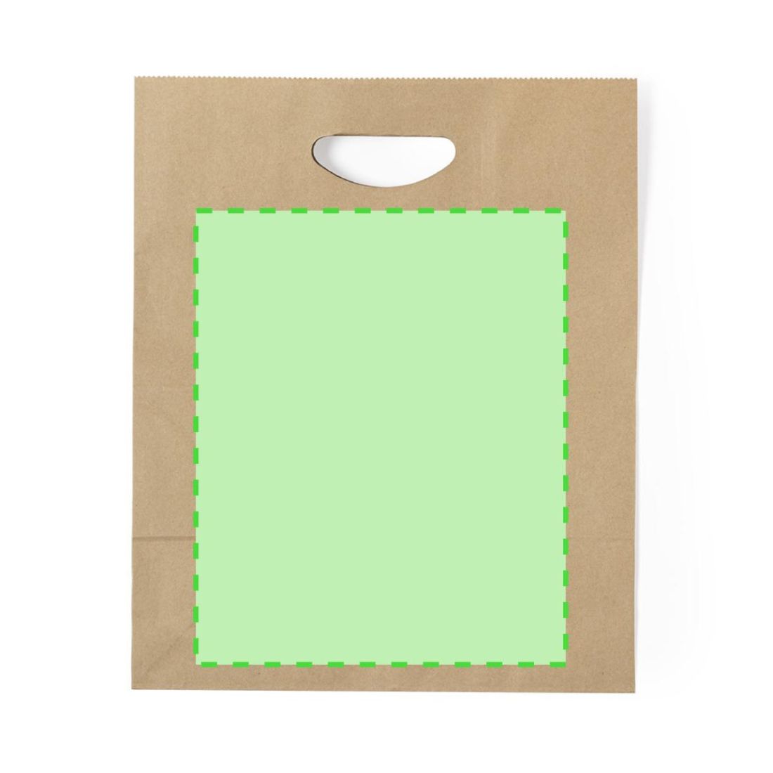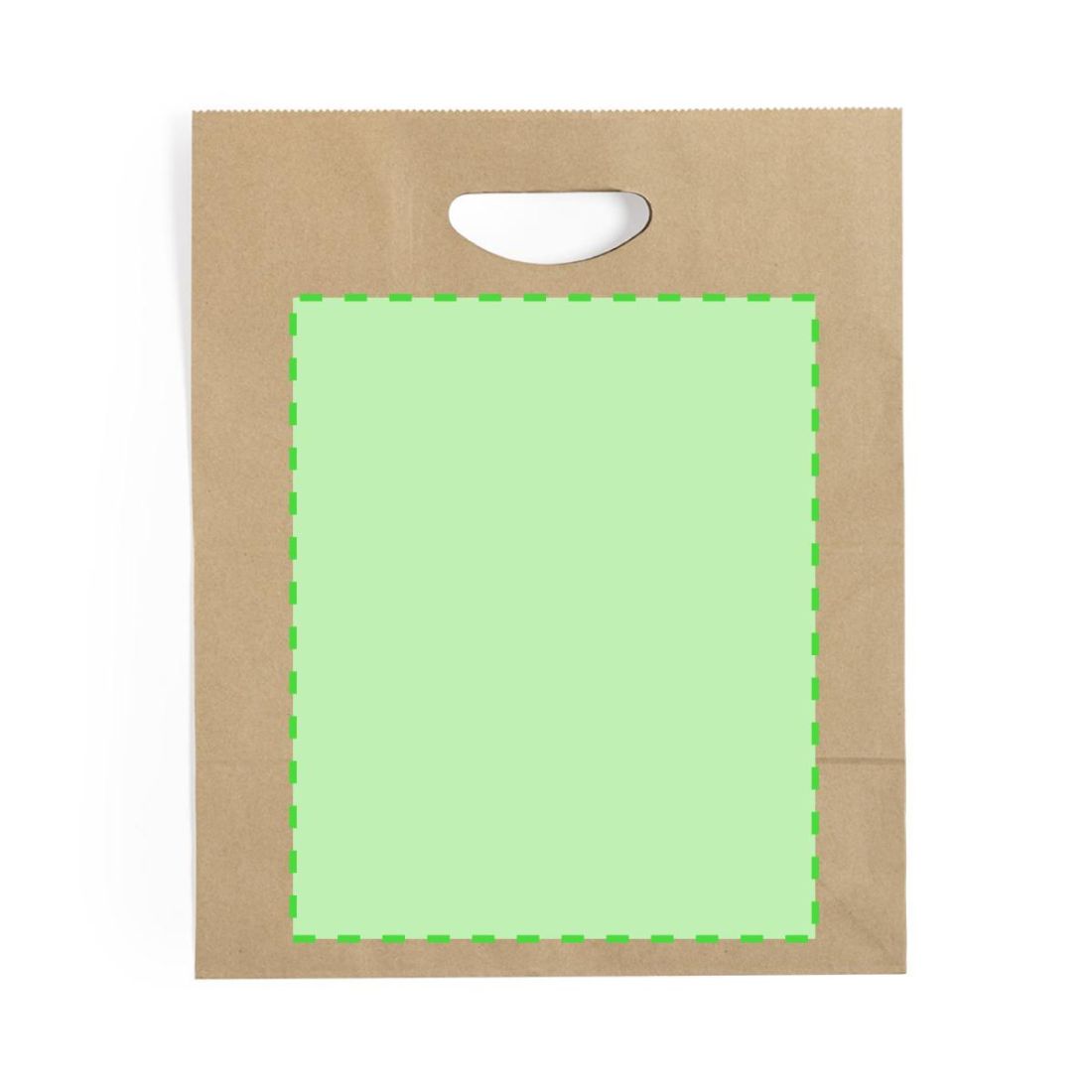 Bolsa ligera de línea nature fabricada en papel reciclado de 80g/m2. Con original asa troquelada y fuelle.