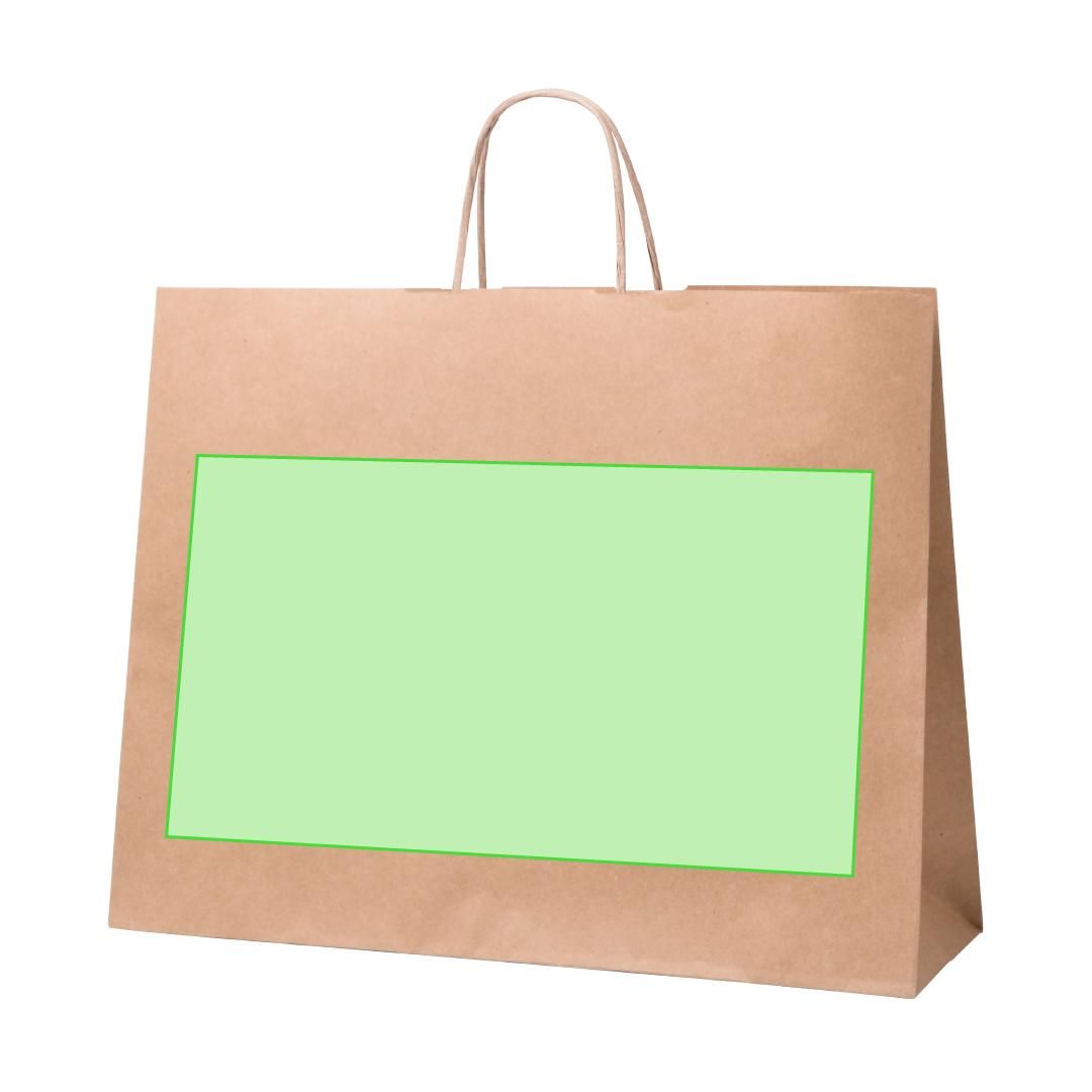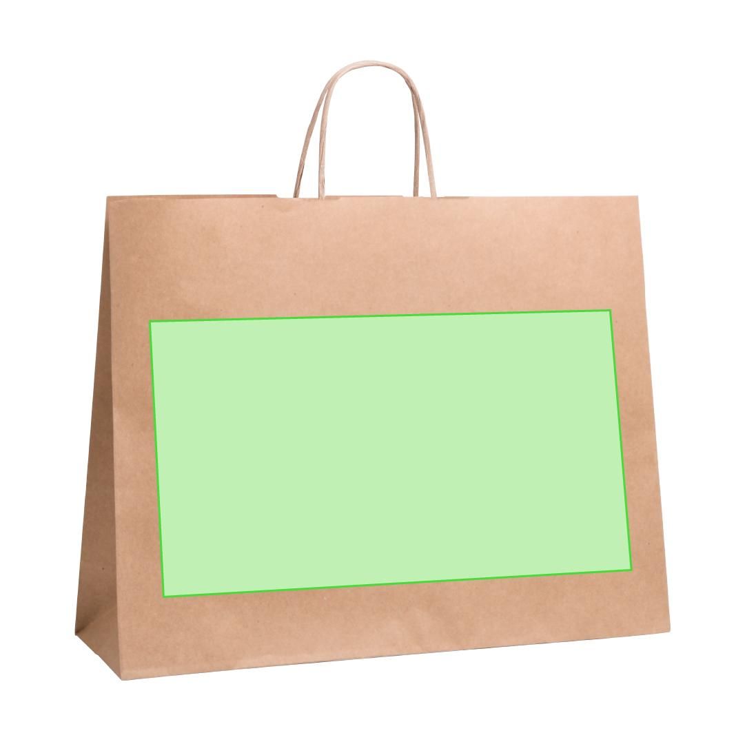 Bolsa en papel de acabado natural de 100g/m2 con asas cortas reforzadas y fuelle. Resistencia hasta 7kg de peso.