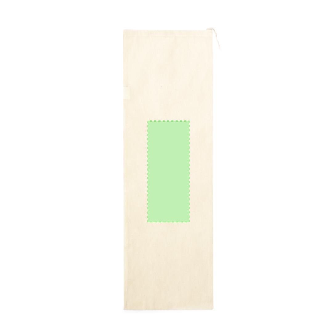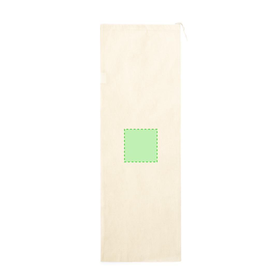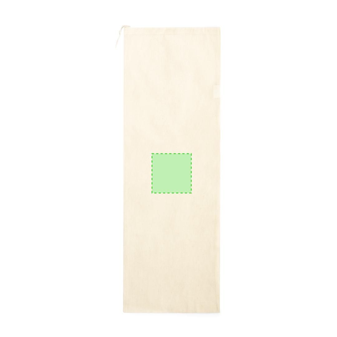 Bolsa tipo pan en material 100% algodón natural con cierre de cordón a juego. Acabado cosido.