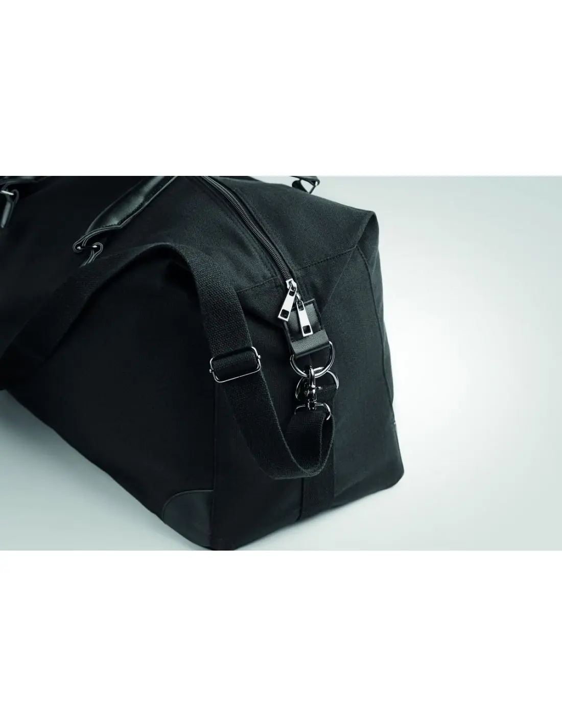 Bolsa de fin de semana en canvas de 340 gr/m² con detalles en PU reciclado. El forro es de RPET 210D. Incluye correas resistentes, ajustables y des…