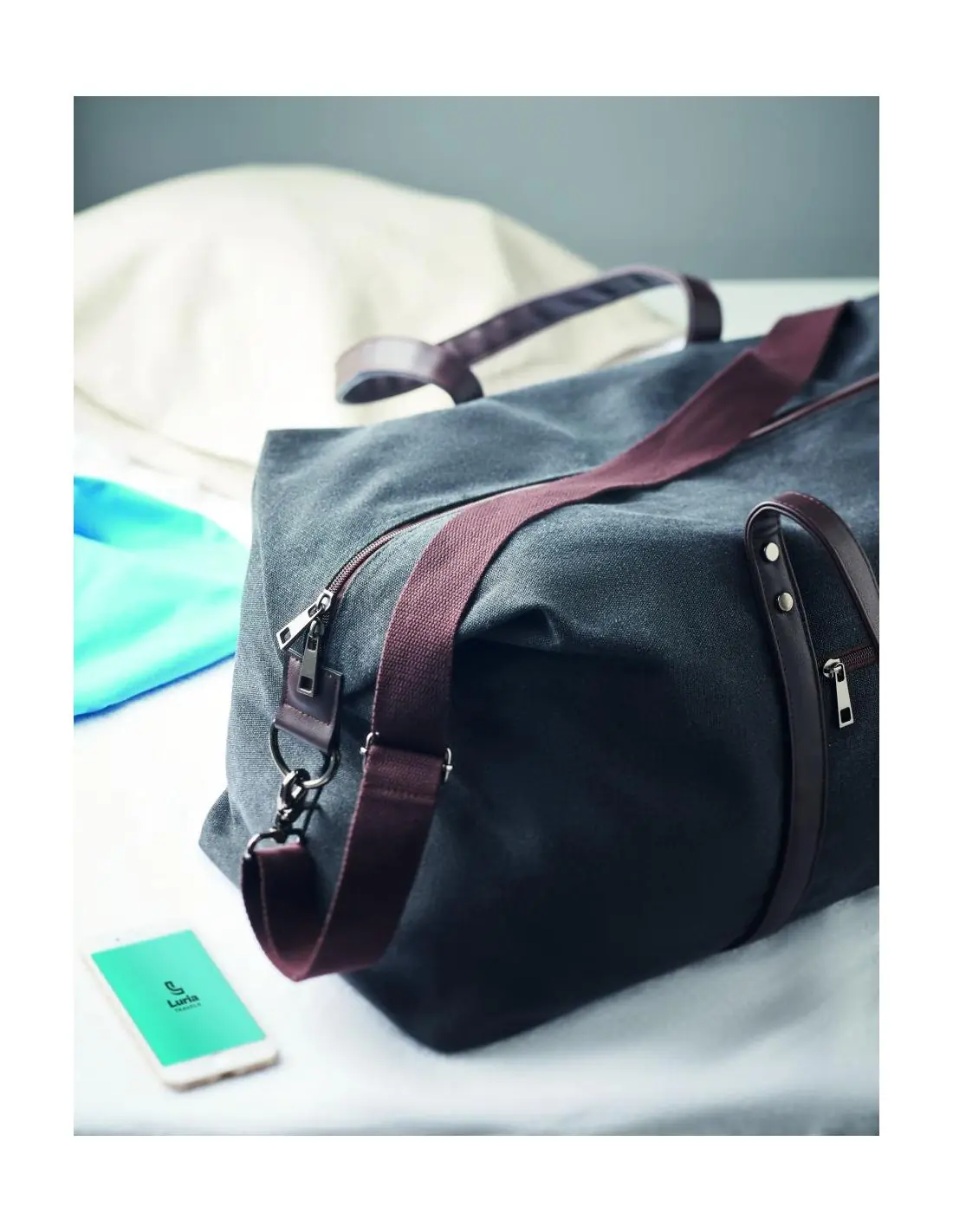 Bolsa de fin de semana en canvas lavada de alta calidad de 450 gr/m² con detalles en PU reciclado. El forro es de RPET 210D. Incluye correas resist…