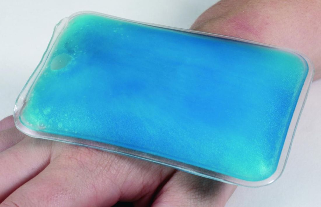 Bolsa de masaje terapéutica. El calor se activa al presionar la placa metálica interior. No requiere pilas. Reutilizable