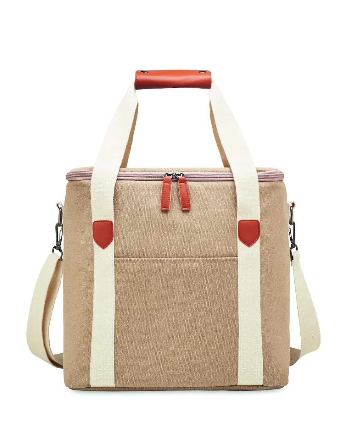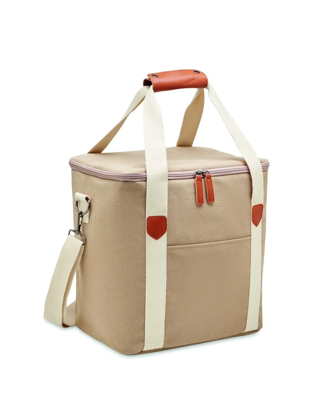Mochila nevera grande de canvas lavado de 450 gr/m² con cinta bandolera de algodón. Aislamiento: PEVA 15C con espuma de PE de 6 mm.