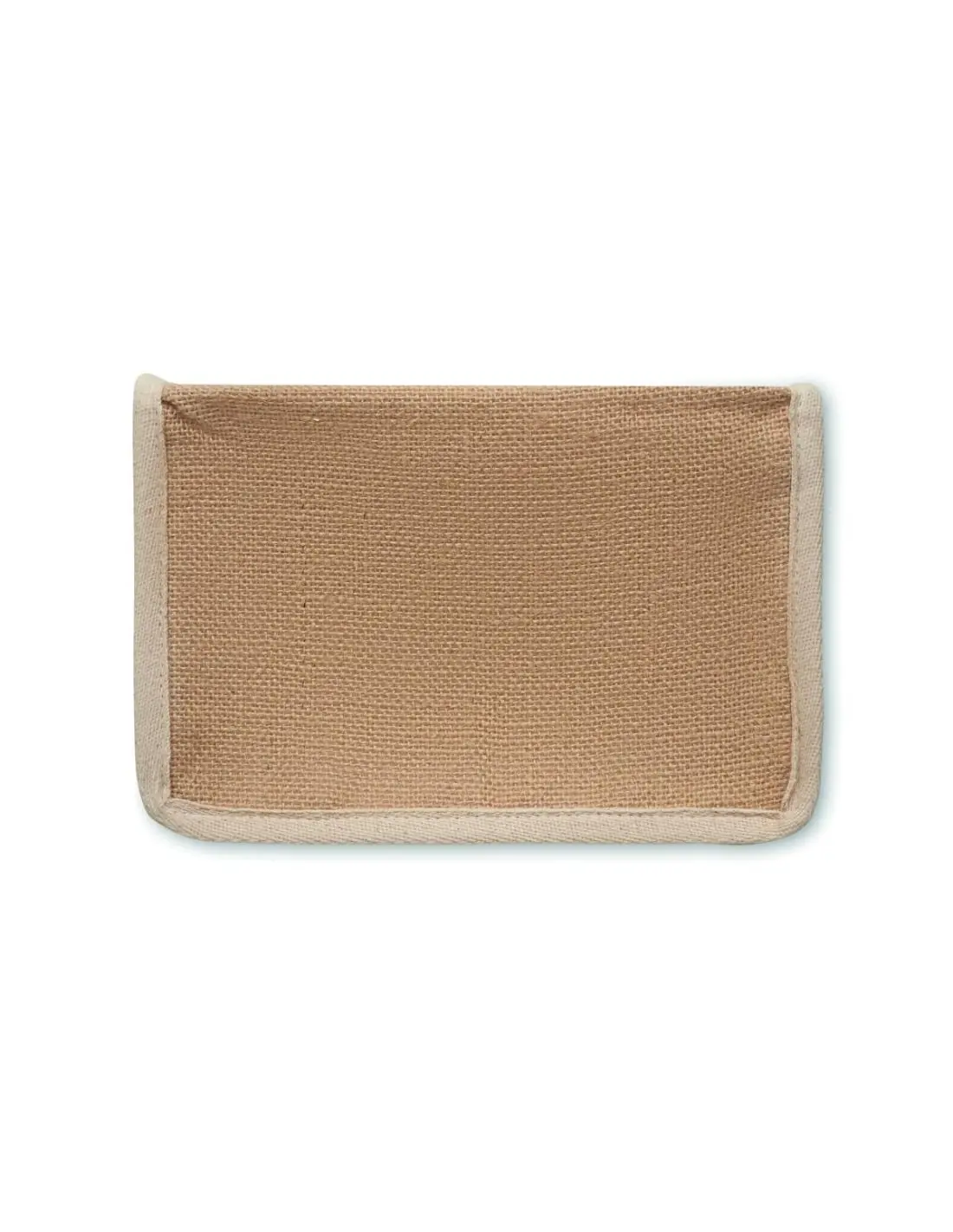 Bolsa nevera de yute con asa de algodón y bolsillo frontal. Capacdidad para 6 botellas de 0,5 L. Material de aislamiento: lámina de aluminio de 3 mm. Capacidad 3L.