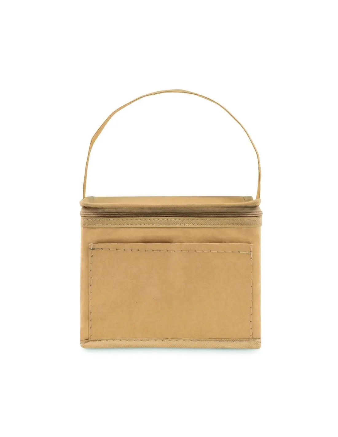 Bolsa nevera tejida de papel reciclado para 6 latas. Dispone de asa y bolsillo frontal. Material aislante: Capa de espuma de PE. Capacidad 3L.