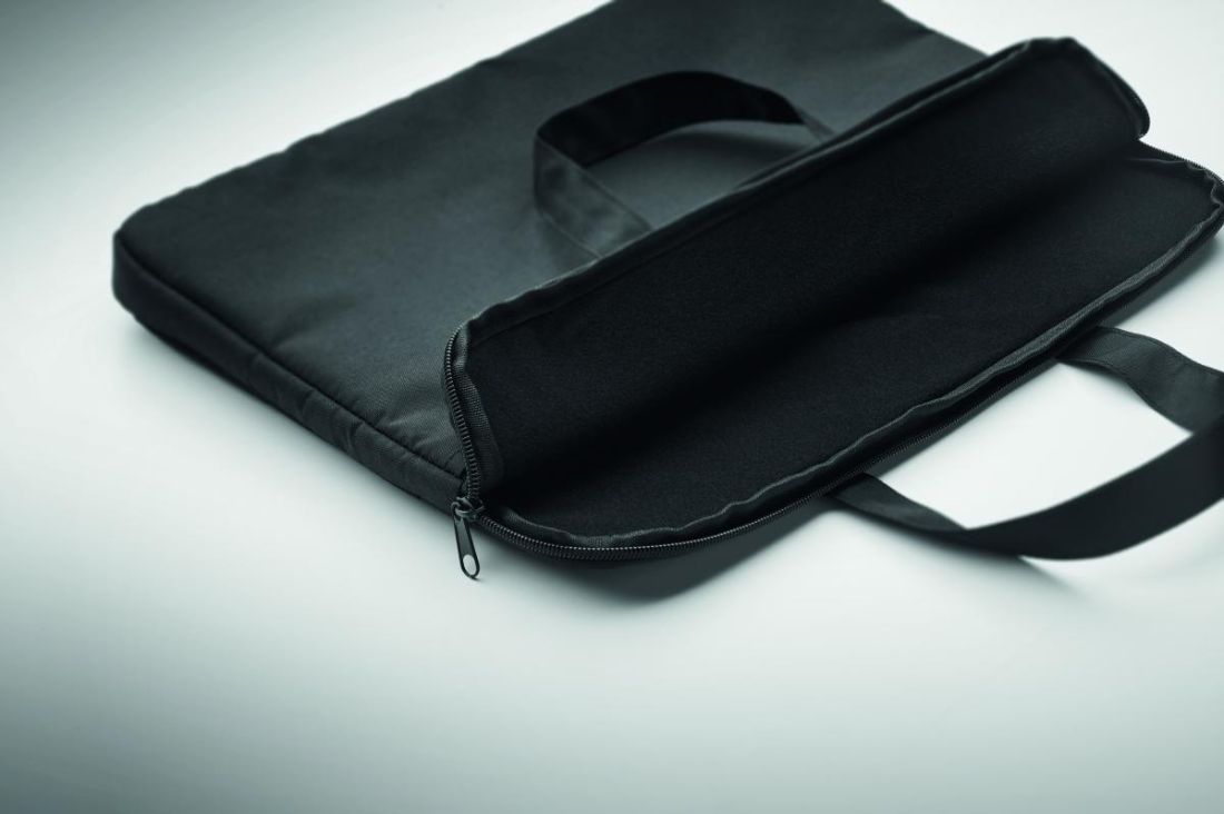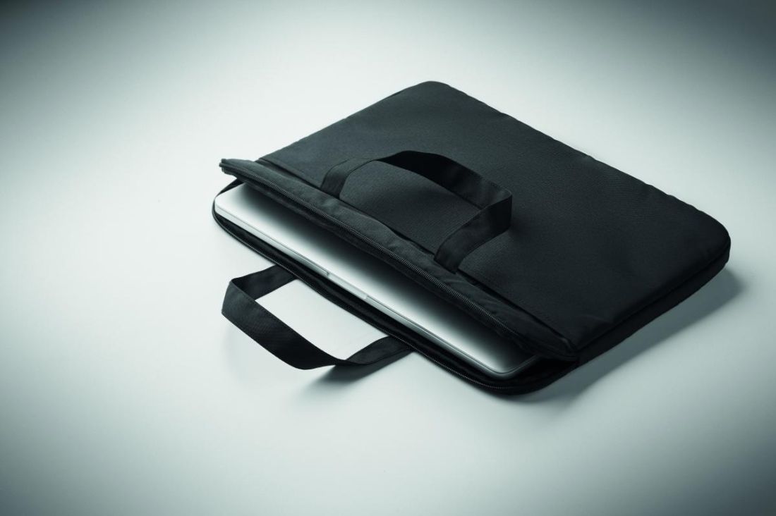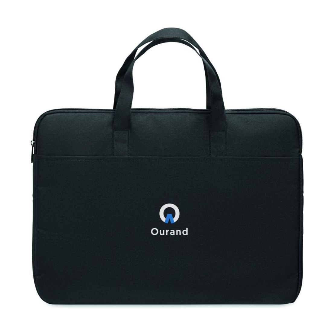 Bolsa para portátil de 15'' en poliéster RPET 300D con asas y correa pasamaletas.