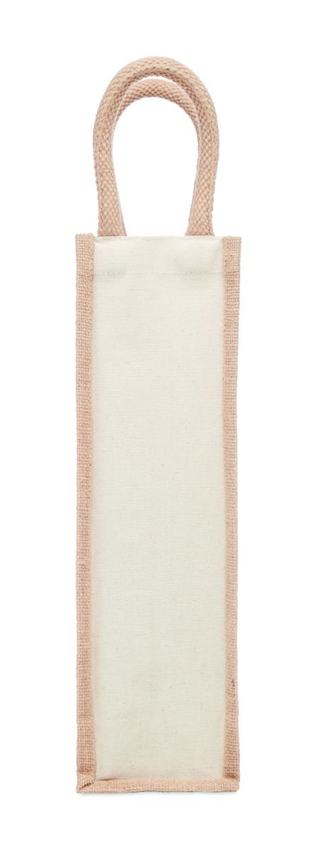 Bolsa de regalo de vino para una botella en yute y canvas de 320 gr/m². Sorprende a alguien especial con un delicioso vino. Presentado en esta bolsa de regalo de alta calidad, tu regalo será definitivamente apreciado. La botella de vino no está incluida.
