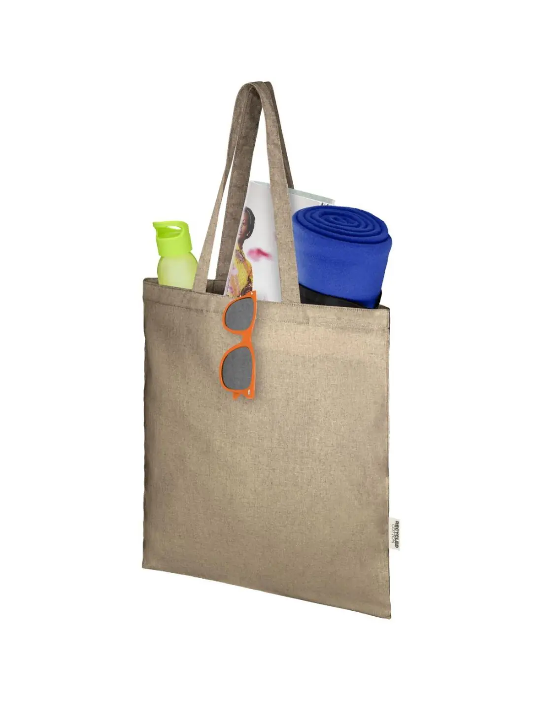 Bolsa Tote fabricada con una mezcla de poliéster y algodón reciclado de 150 g/m². La bolsa se pliega fácilmente y cabe en un espacio reducido, por lo que resulta perfecta para una gran variedad de...
