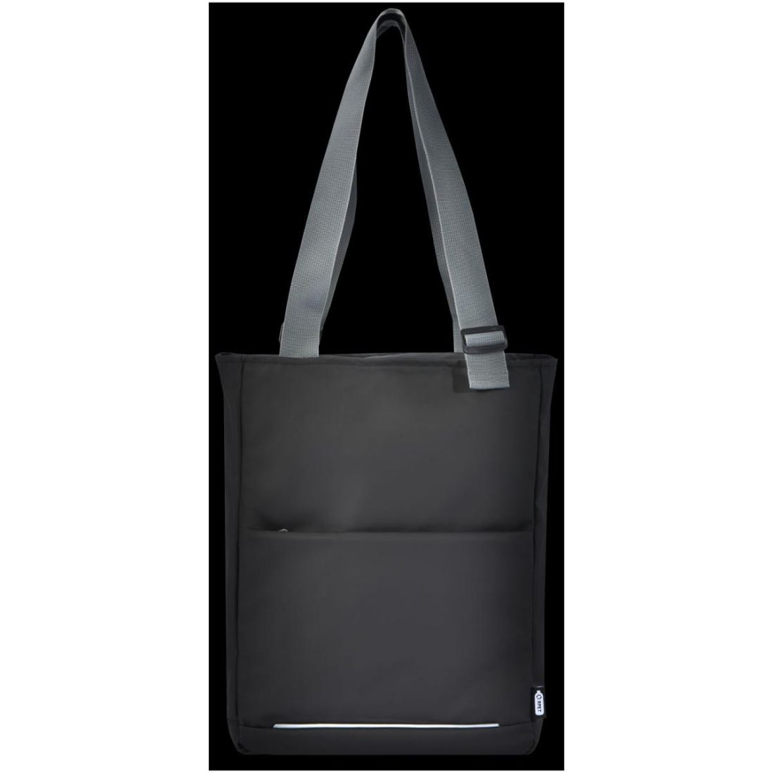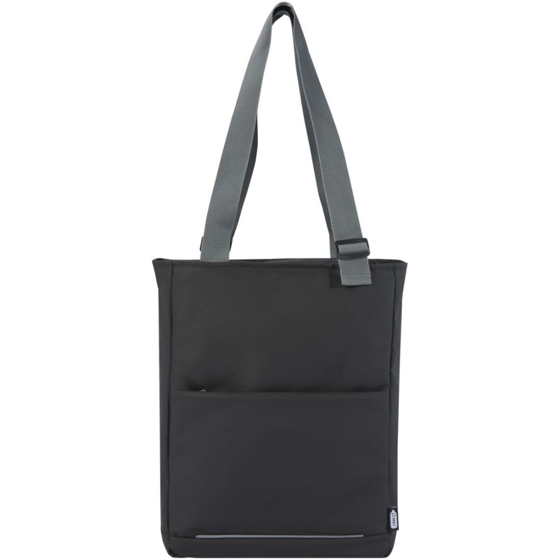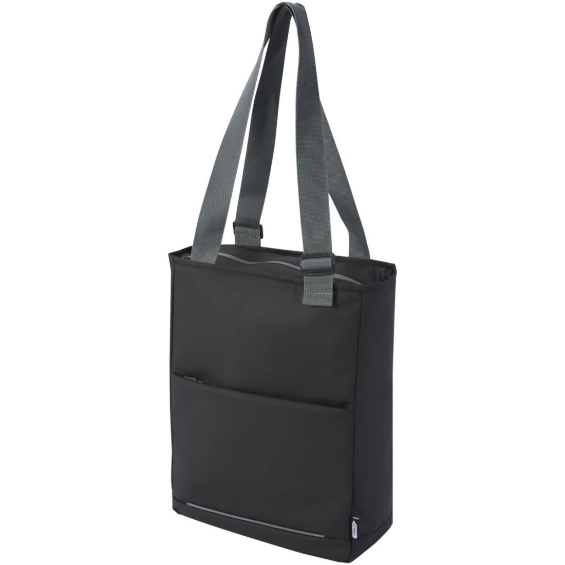 Bolsa Tote para portátil resistente al agua fabricada con materiales reciclados GRS, incluidas las cremalleras. Cuenta con una funda específica para tabletas, un compartimento para portátil de 14", múltiples bolsillos de organización, un bolsillo delantero con panel de organización, asas ajustables de 35 cm de largo y una correa para equipaje. Los materiales reciclados GRS están presentes en el tejido principal, el forro, las correas y las cremalleras. Capacidad: 14 litros. Sin PVC.