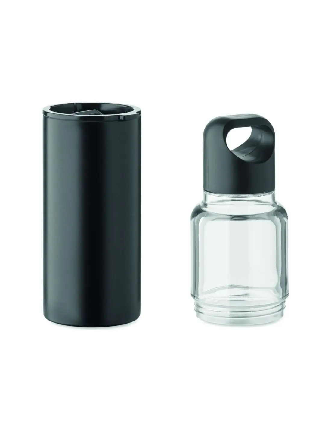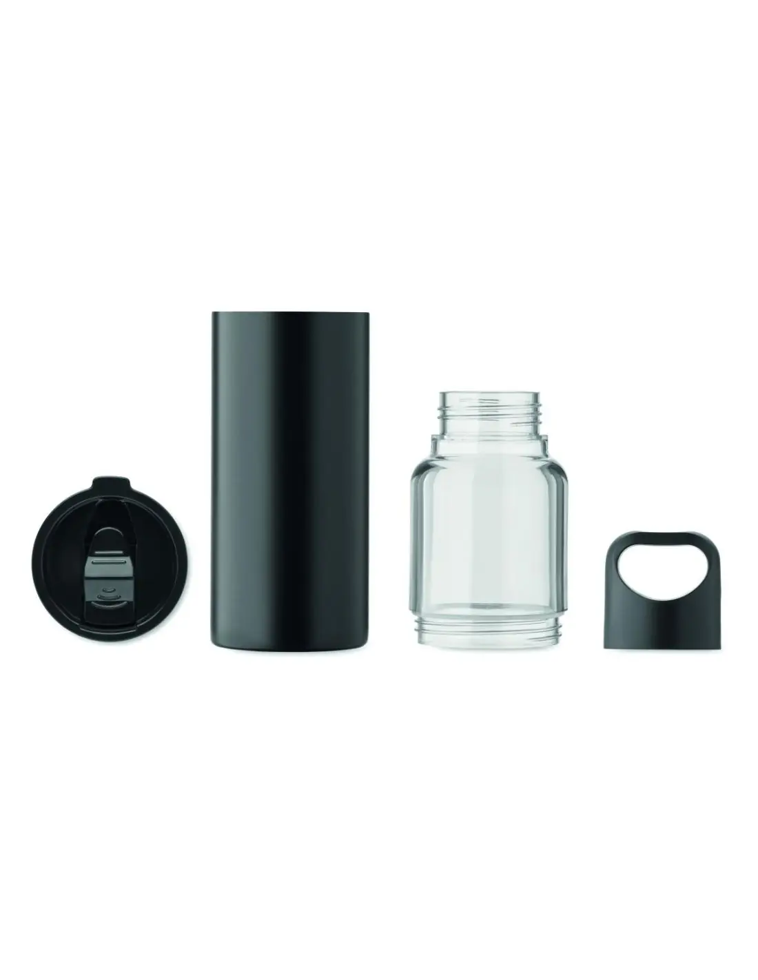 Botella 2 en 1 de Tritan y vaso de doble pared de acero inoxidable reciclado (90% reciclado y 10% de acero inoxidable). 2 tapas de material PP. Capacidad total 610 ml, sólo vaso 350 ml