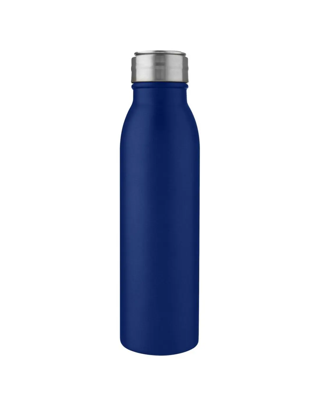 Botella deportiva de acero inoxidable 18/8 de una sola pared con tapa de rosca a prueba de derrames y asa de mano de aleación de zinc resistente. No contiene BPA y se ha probado y homologado según la legislación alemana sobre seguridad alimentaria (LFGB). Contenido de ftalatos probado y homologado según la normativa REACH. Se adapta a la mayoría de los portavasos de coche. Capacidad de 700 ml. Se recomienda lavarla a mano. Se presenta en una caja de regalo de cartón reciclado.