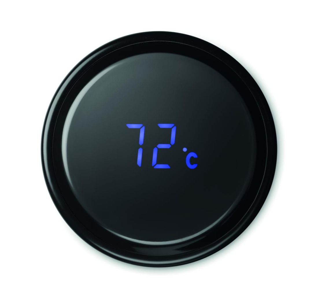 Botella de acero inoxidable de doble pared aislado al vacío con infusor de té y termómetro táctil LED en la tapa. Anti-fugas. Funciona con pila CR2032 incluida y reemplazable). Capacidad 450 ml. Anti fugas.
