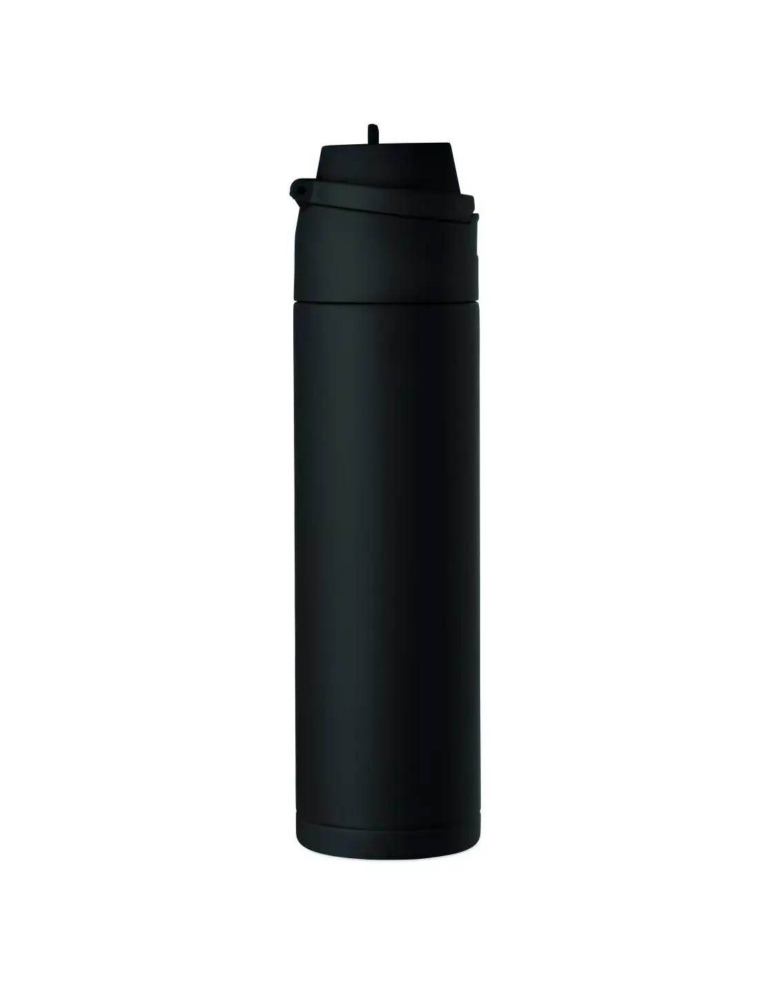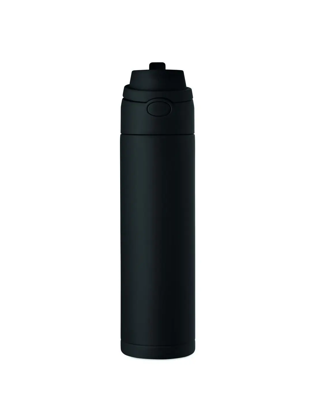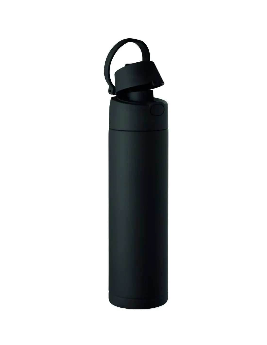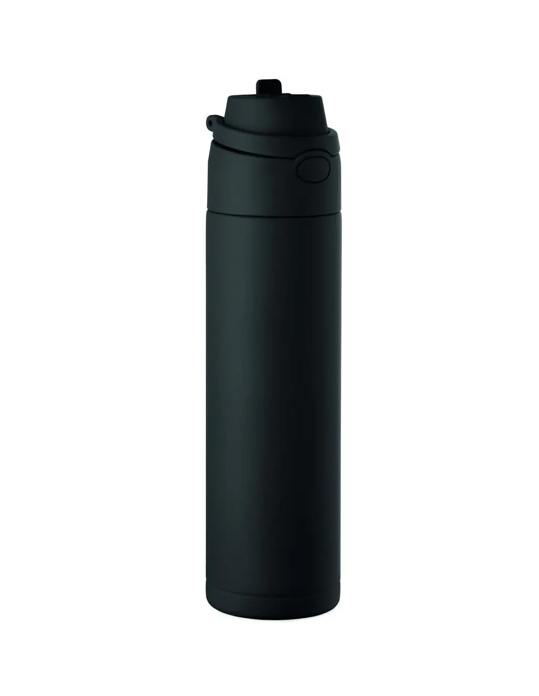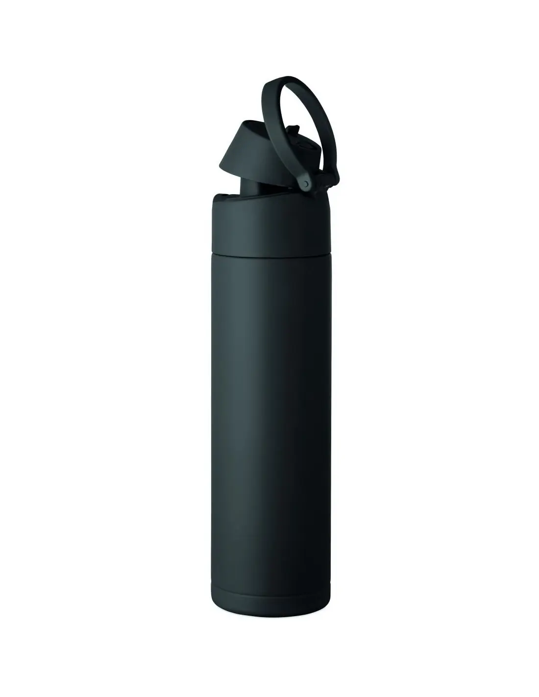Botella de acero inoxidable reciclado de pared simple (90% de acero inoxidable reciclado y 10% de acero inoxidable). Con pajita 2 en 1 y tapa de PP con asa. Sin fugas. Capacidad: 650 ml.