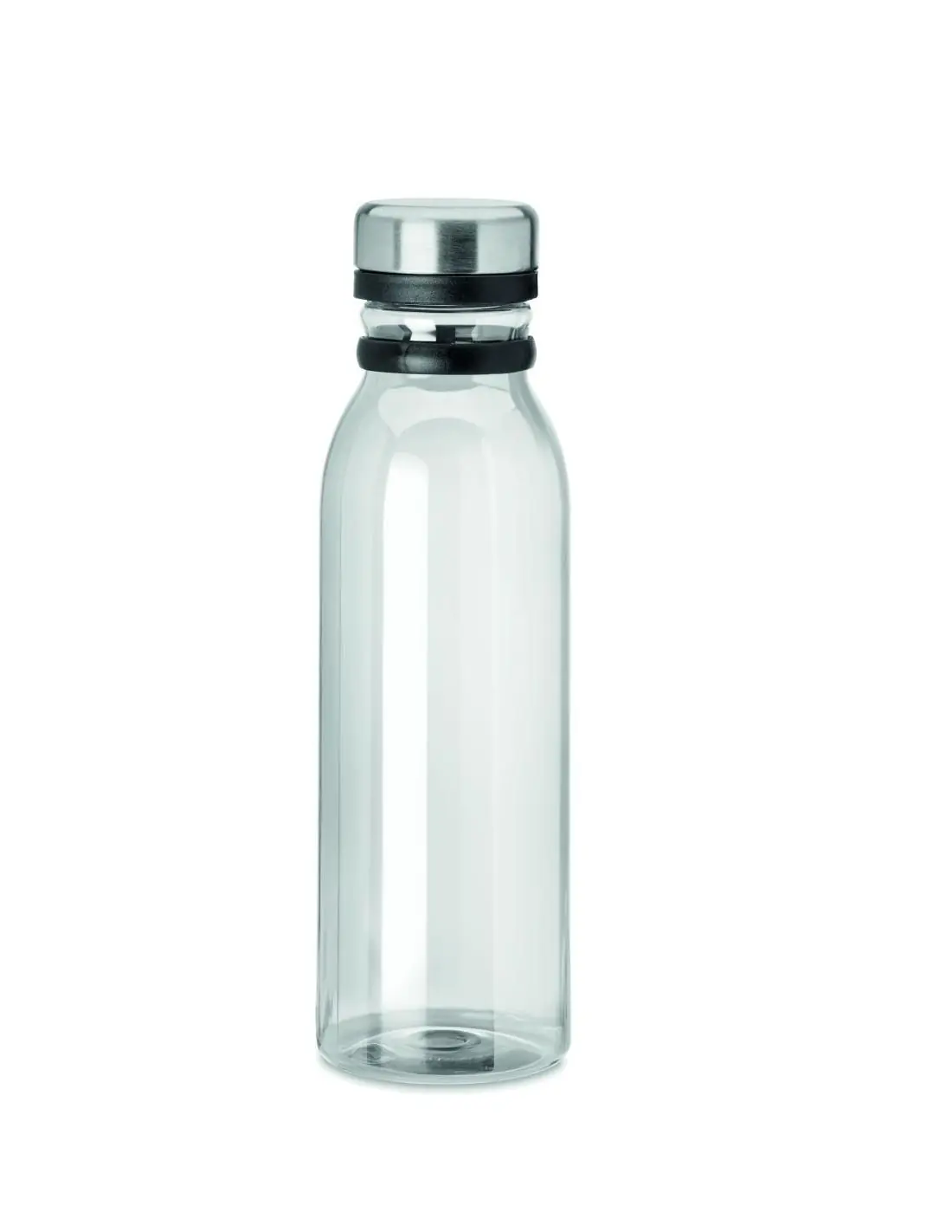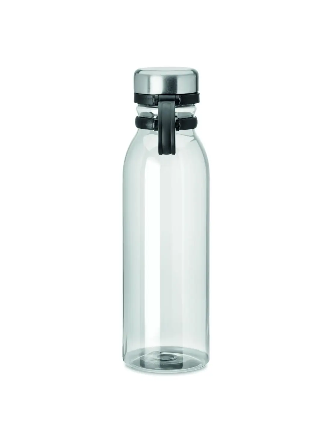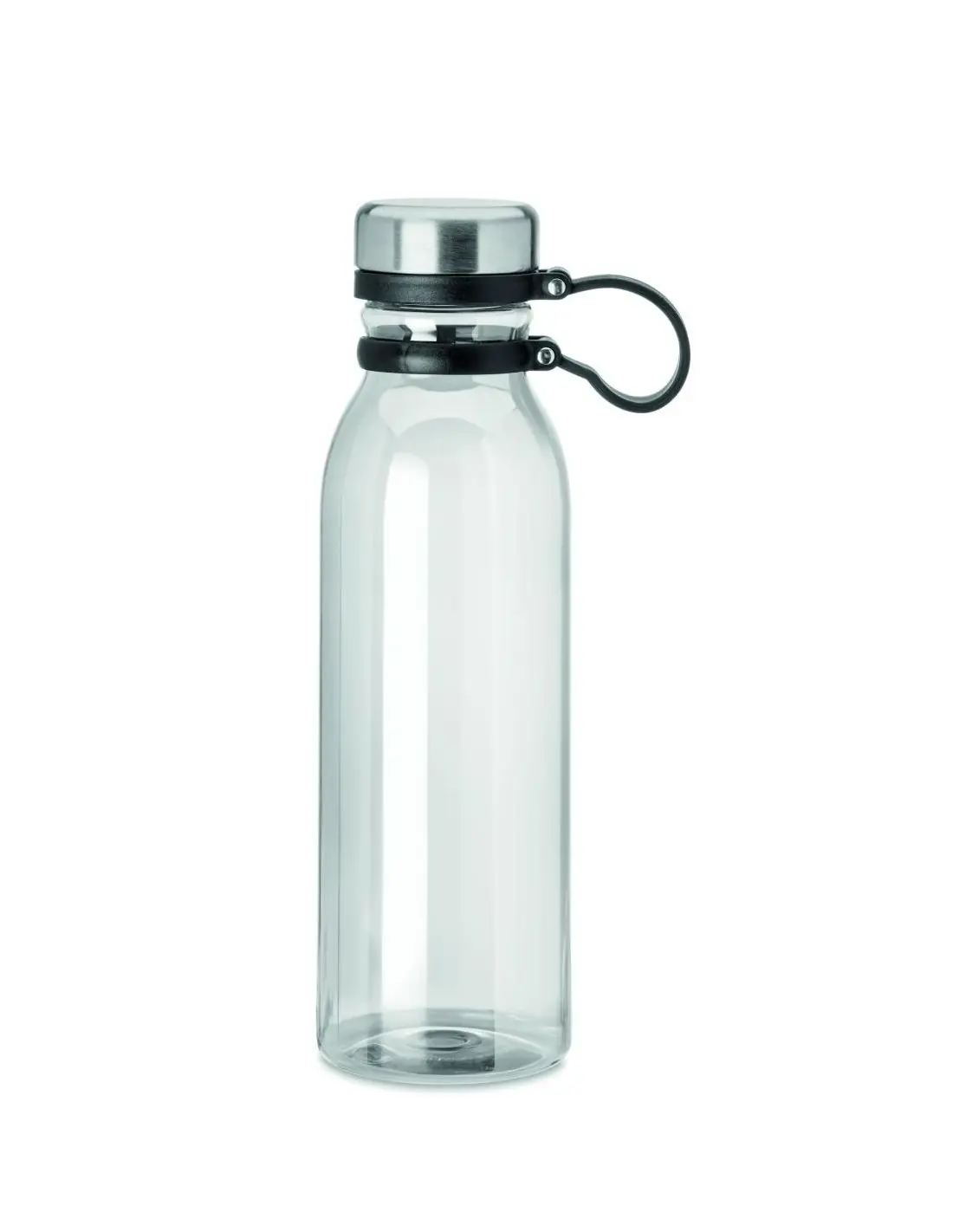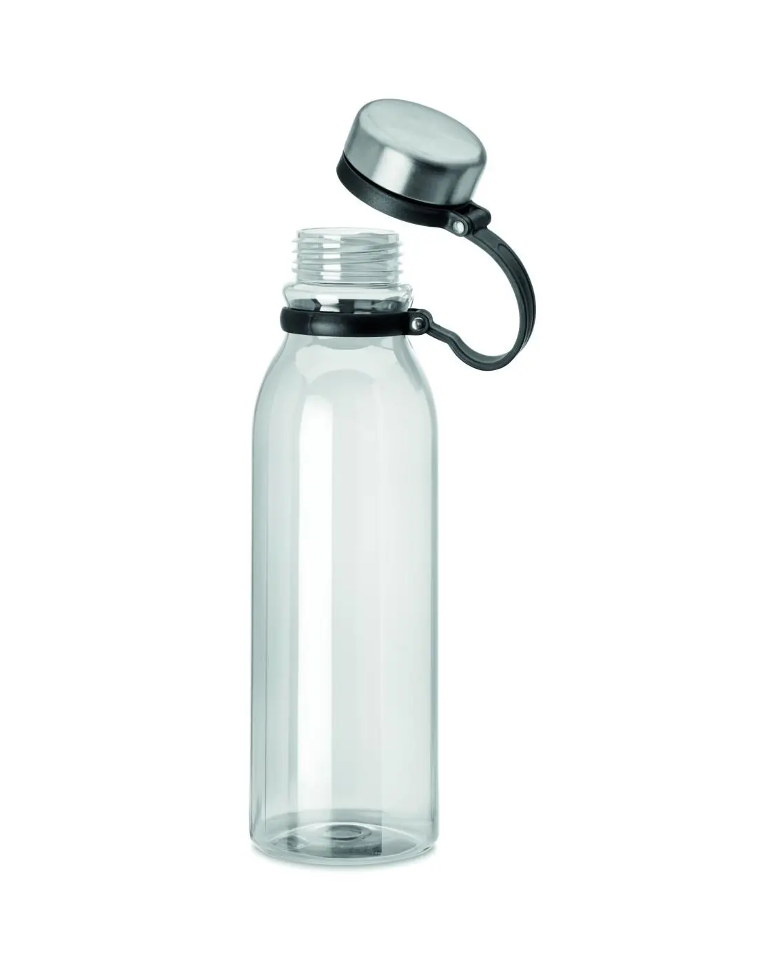 Botella en RPET con tapa en acero inoxidable y agarre TPR para facilitar su transporte. Sin BPA. Sin fugas. Capacidad: 780 ml. No apto para bebidas gaseosas. Anti fugas.
