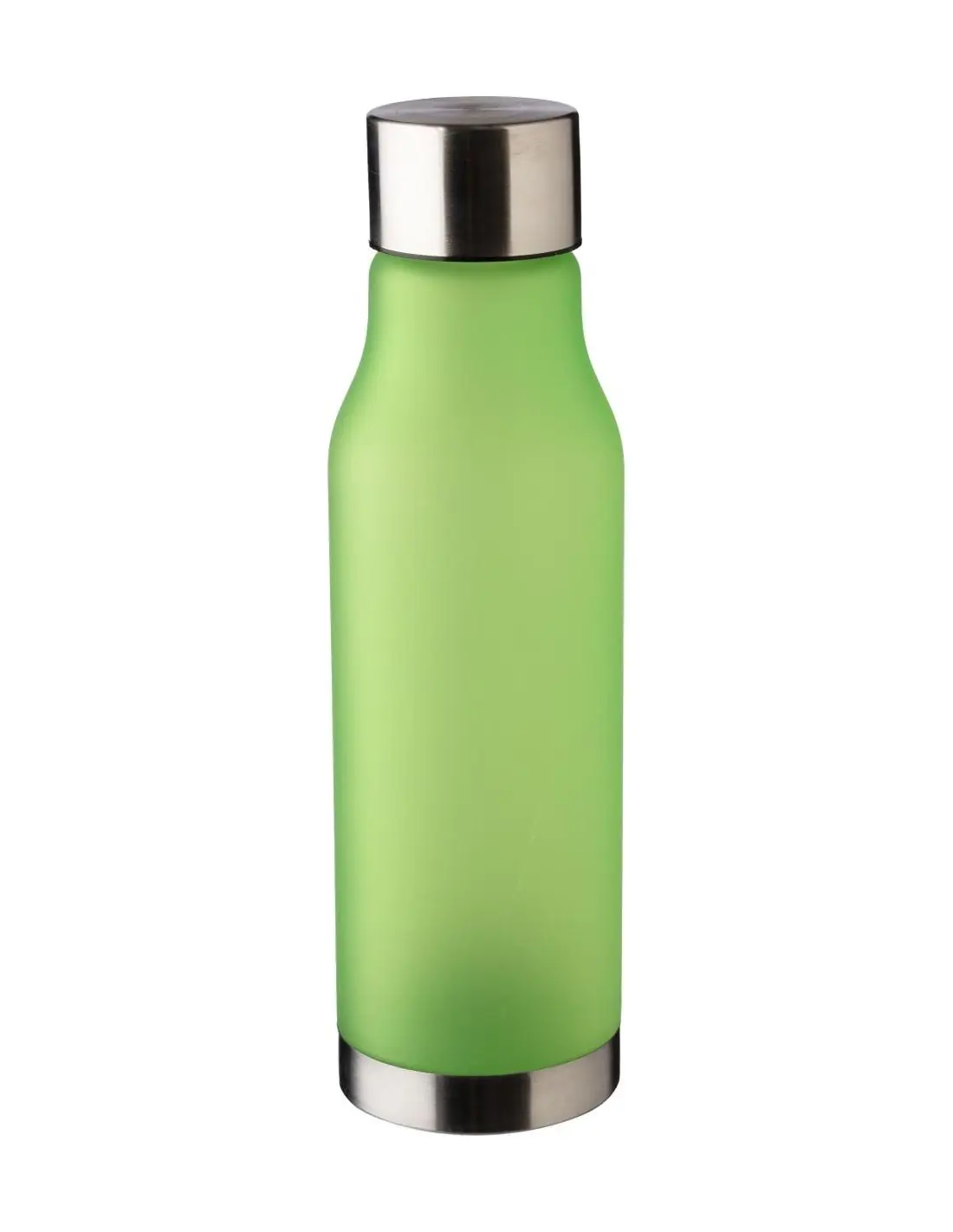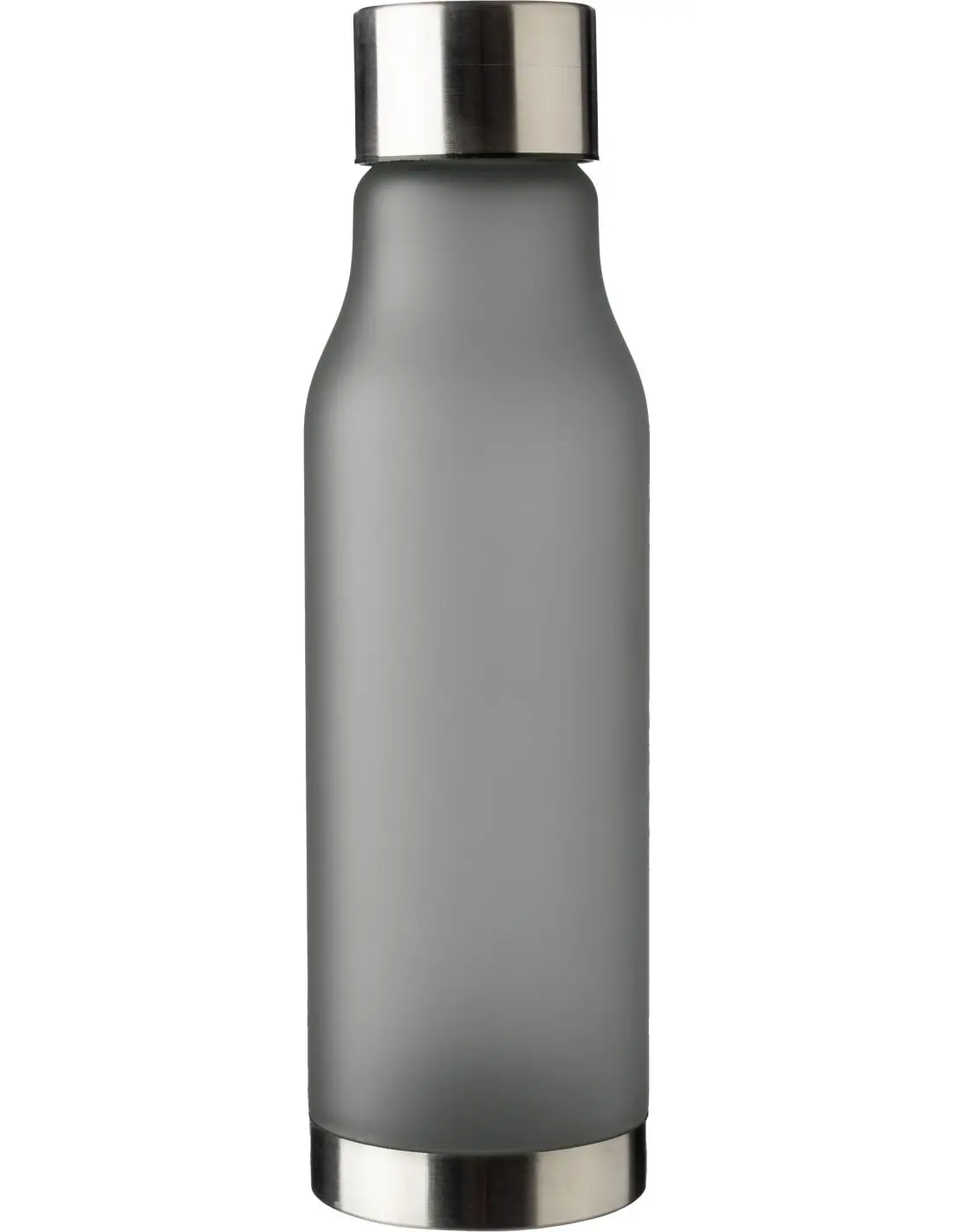 Botella de rPet (600 ml) con tapa y fondo de acero inoxidable (201). Acabado de goma en la botella con aspecto glaseado. Presentada envuelta en papel tisú.