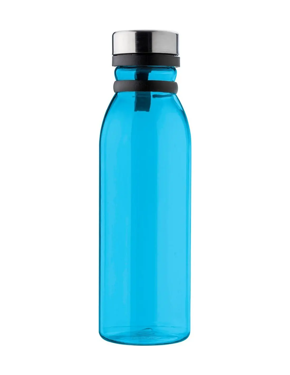 Botella de rPET (750 ml). La correa de silicona mantiene la tapa de acero inoxidable unida a la botella. Recomendable para uso de agua fría. Evitar bebidas ácidas o con gas.
