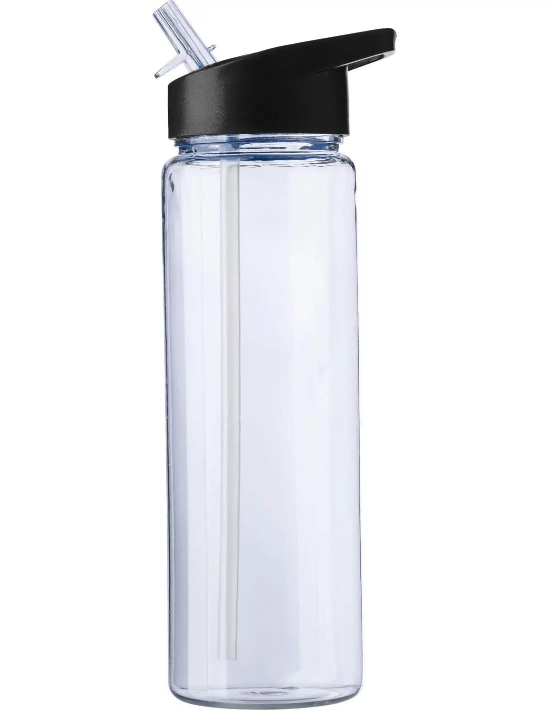 Bidón de rPET (750 ml) con pajita plegable en la tapa. Recomendable para uso de agua fría. Evitar bebidas ácidas o con gas.