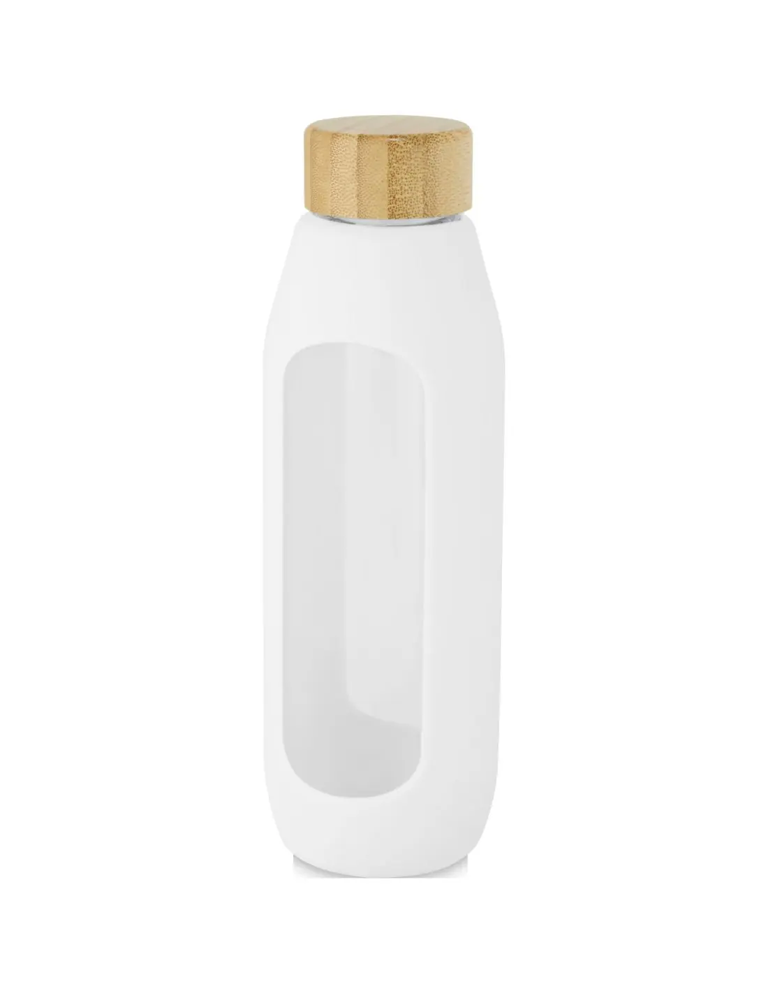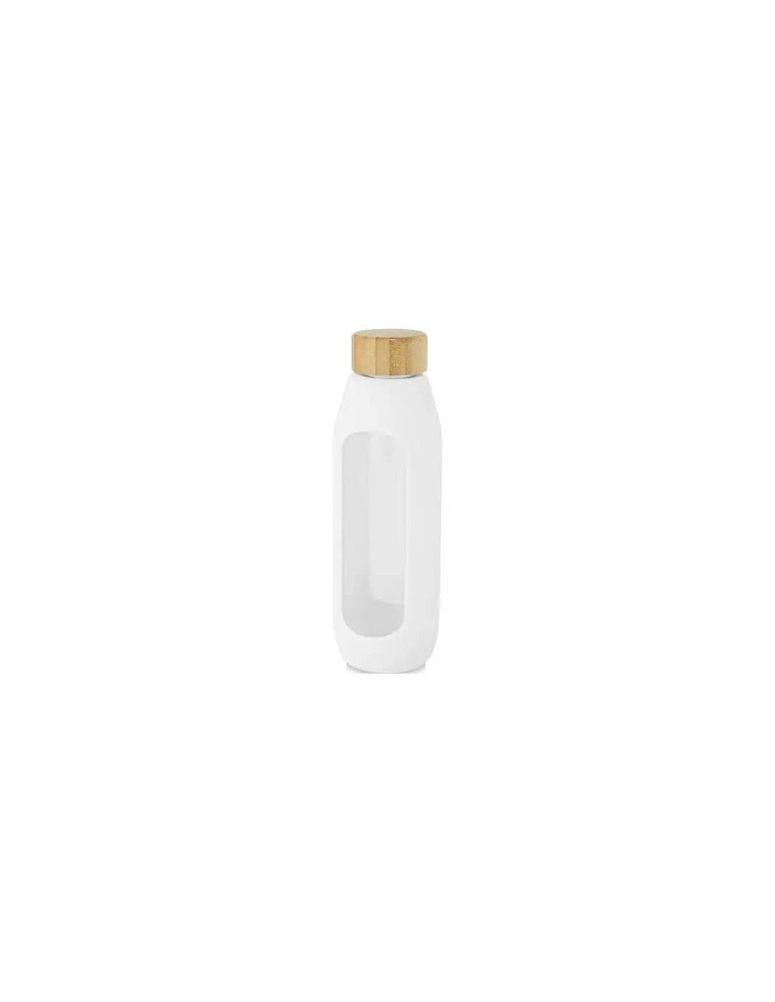 Botella de agua ecológica y reutilizable que proporciona una experiencia de consumo de agua pura. La botella está hecha de vidrio borosilicato resistente que conserva el sabor puro y fresco del agua, y no contiene productos químicos nocivos. Tiene un agarre de silicona con una tapa hermética hecha de bambú orgánico. Probado y homologado conforme a la legislación alemana sobre seguridad alimentaria (LFGB), y comprobado el contenido de ftalatos según la normativa REACH. Capacidad de 600 ml. Al retirar el agarre y la tapa, la botella se puede lavar en el lavavajillas. Se presenta en una caja de regalo de cartón reciclado.