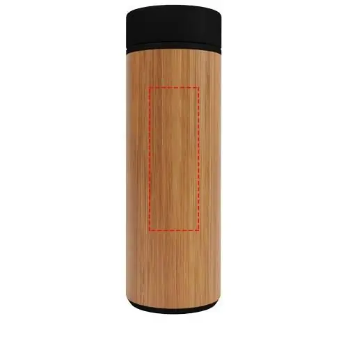 Botella de bambú y acero inoxidable con aislamiento al vacío de doble pared con un sensor de temperatura en la parte superior de la tapa, que muestra la temperatura de la bebida del interior de la botella (en grados Celsius). Mantiene la bebida caliente durante 8 horas y fría durante 12 horas. Se suministra con un filtro de té. Capacidad: 500 ml. Se entrega en una caja de regalo.