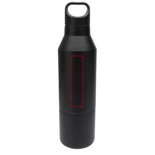 Botella con aislamiento de cobre de doble pared de acero inoxidable con certificado RCS y vaso extraíble, también de doble pared. Esta botella multiusos está diseñada para caber en el bolsillo lateral de una mochila y cuenta con una cómoda asa de transporte integrada en el tapón. Revestimiento exterior duradero. Mantiene la bebida caliente durante 12 horas y fría durante 24 horas. Se presenta en una caja de regalo de cartón reciclado. Capacidad de volumen de botella: 600 ml. Capacidad de volumen de la taza: 300 ml.