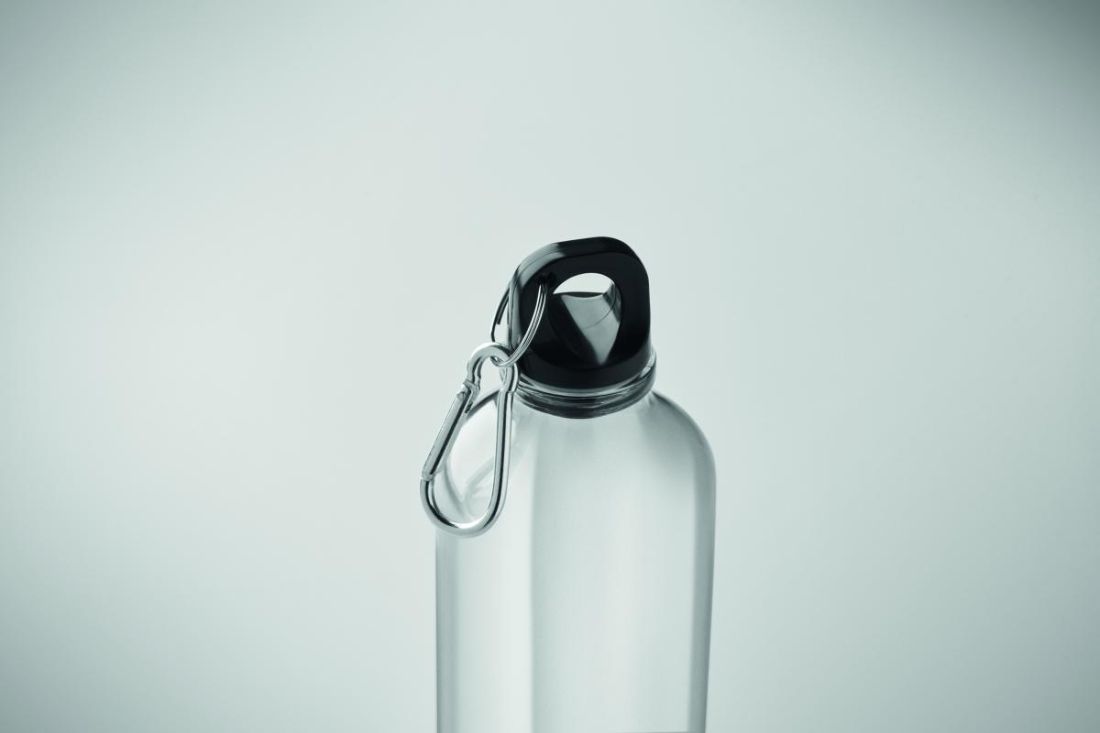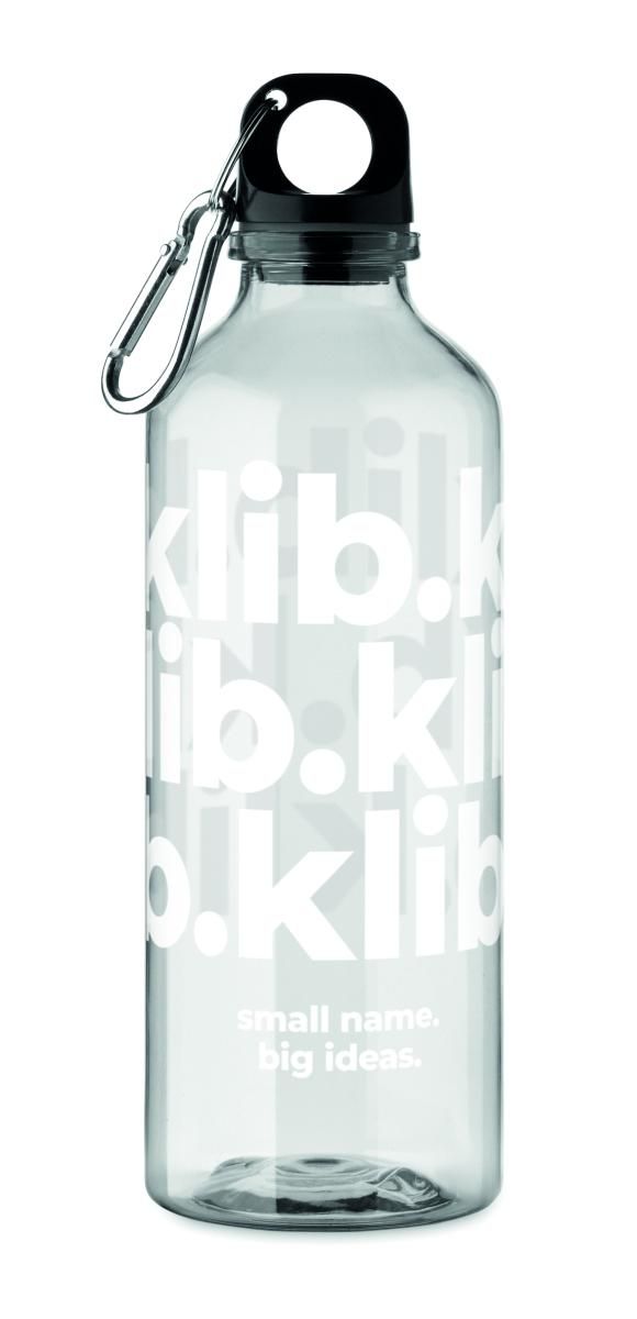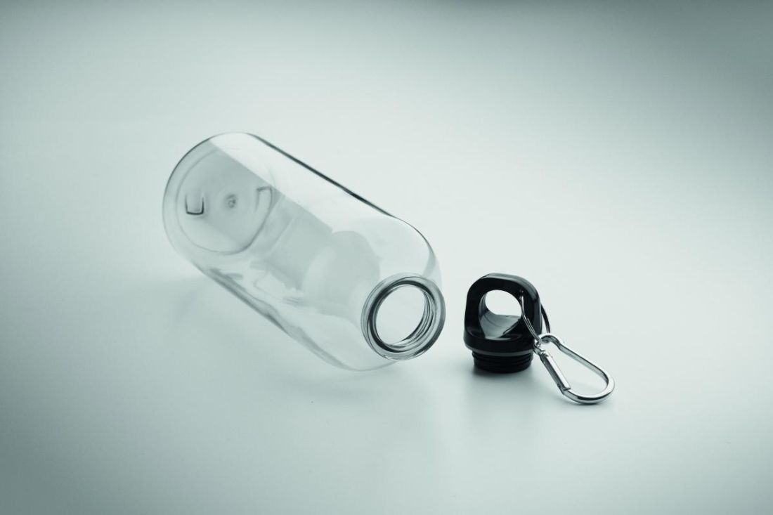 Botella traslúcida de RPET con mosquetón. Capacidad: 500 ml.