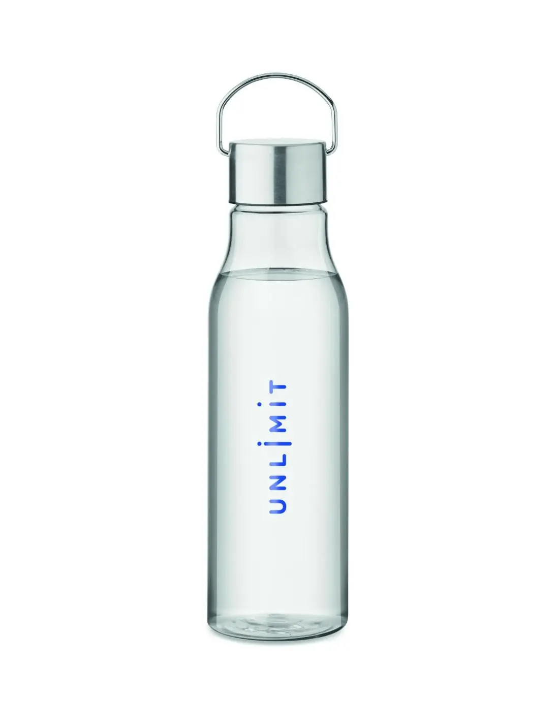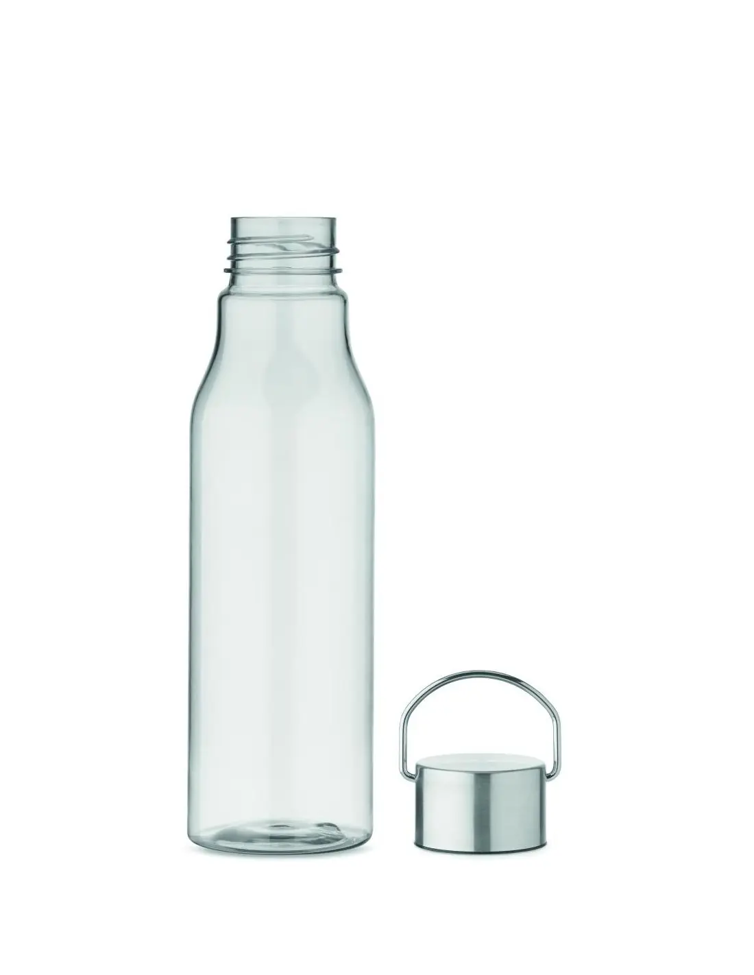 Botella de RPET sin BPA y tapón de acero inoxidable con asa. Anti fugas. Capacidad: 600 ml.